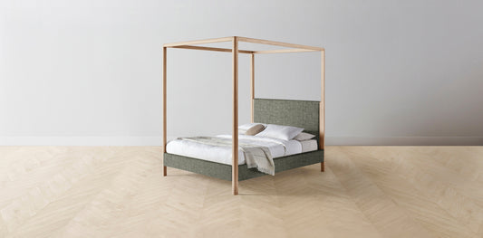 The Thompson - Belgian Linen Thyme Canopy Bed - 48" Headboard - Upholstered on reverse