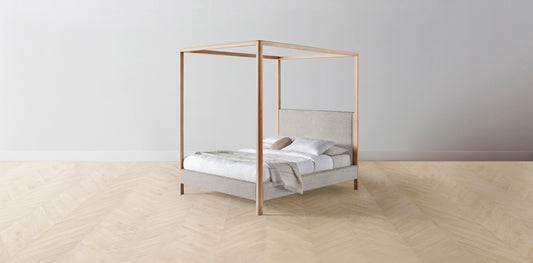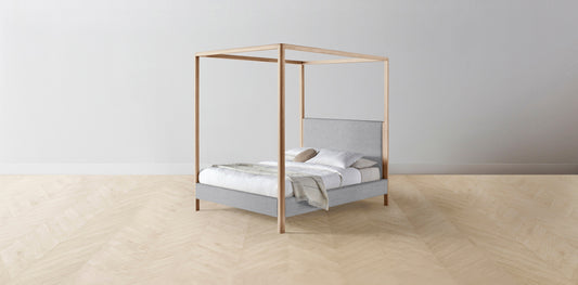 The Thompson - Italian Bouclé Fossil Canopy Bed - 48" Headboard - Upholstered on reverse