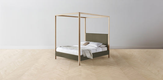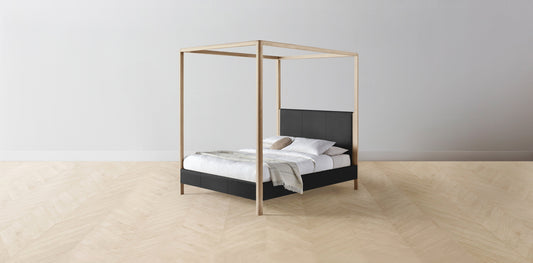 The Thompson - Pebbled Leather Ink Canopy Bed - 48" Headboard - Muslin on reverse