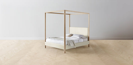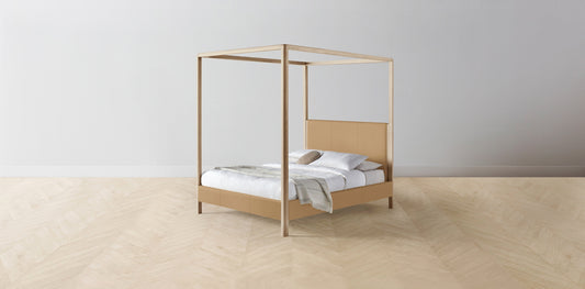 The Thompson - Pebbled Leather Latte Canopy Bed - 48" Headboard - Muslin on reverse