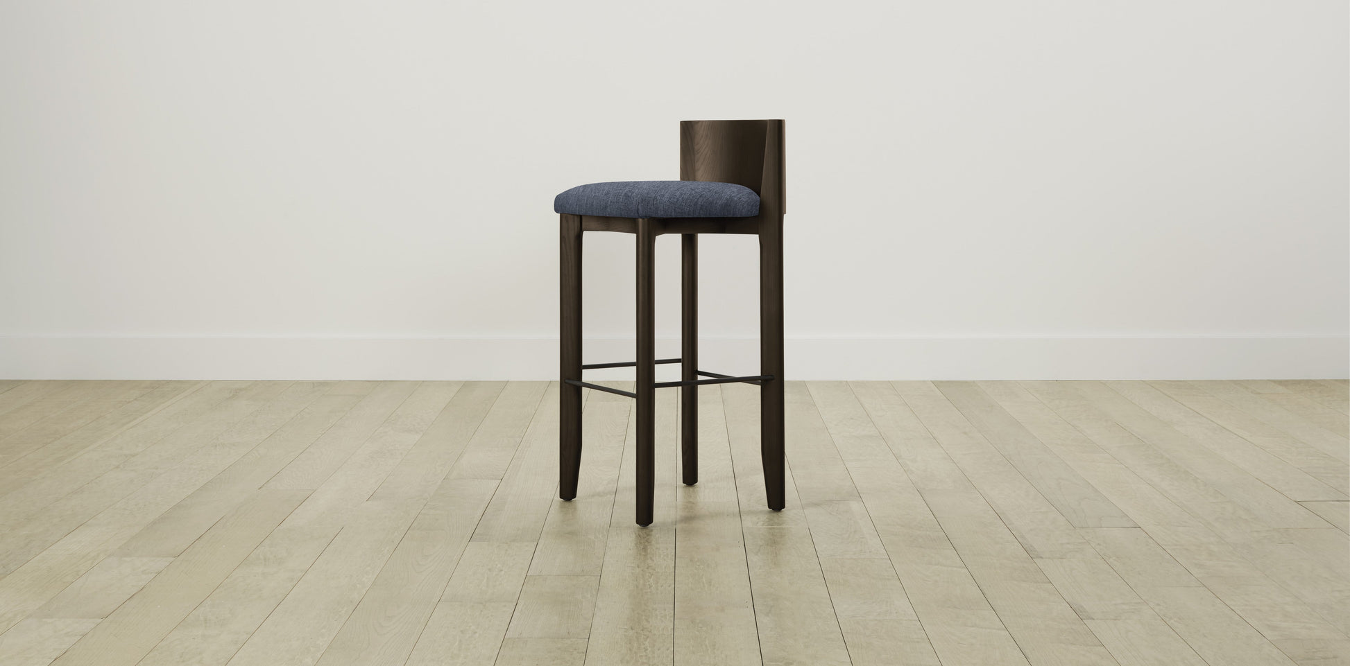 The Delancey with Brushed Brass - Performance Tweed Denim Bar and Counter Stool