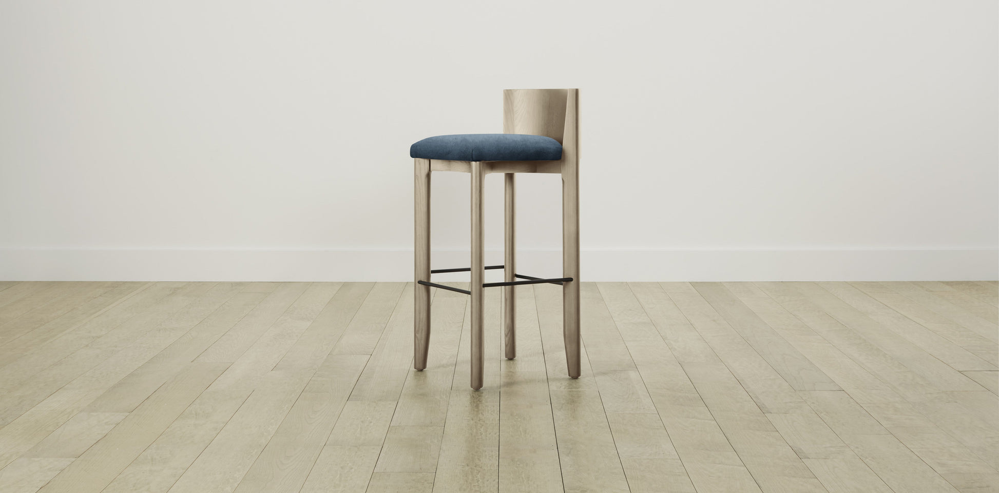 The Delancey with Brushed Brass - Performance Velvet Lagoon Bar and Counter Stool
