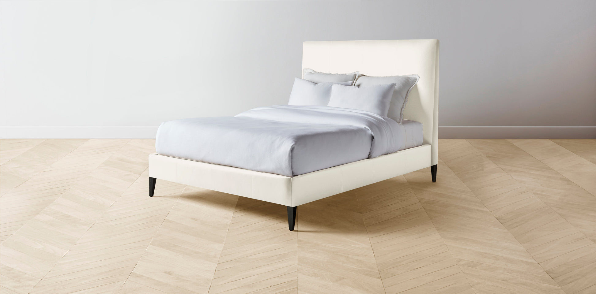 The Essex - Pebbled Leather Swan Bed - 56" Headboard - Muslin on reverse