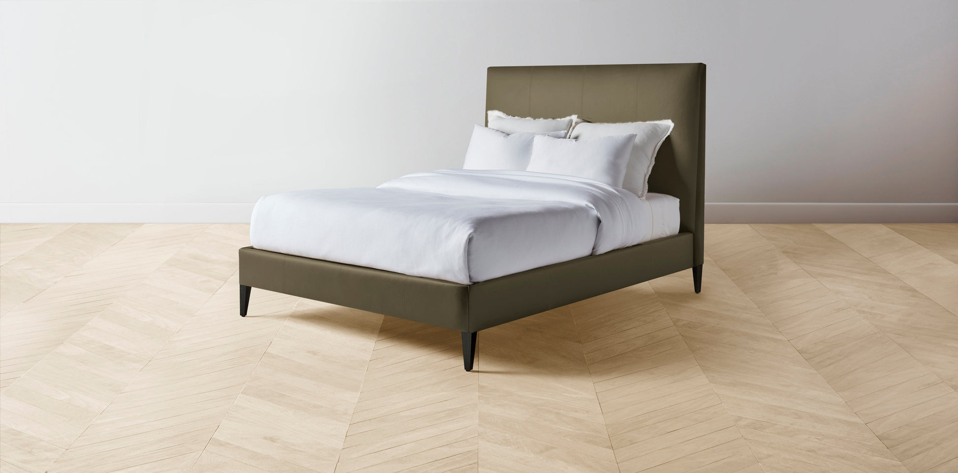 The Essex - Pebbled Leather Truffle Bed - 56" Headboard - Upholstered on reverse