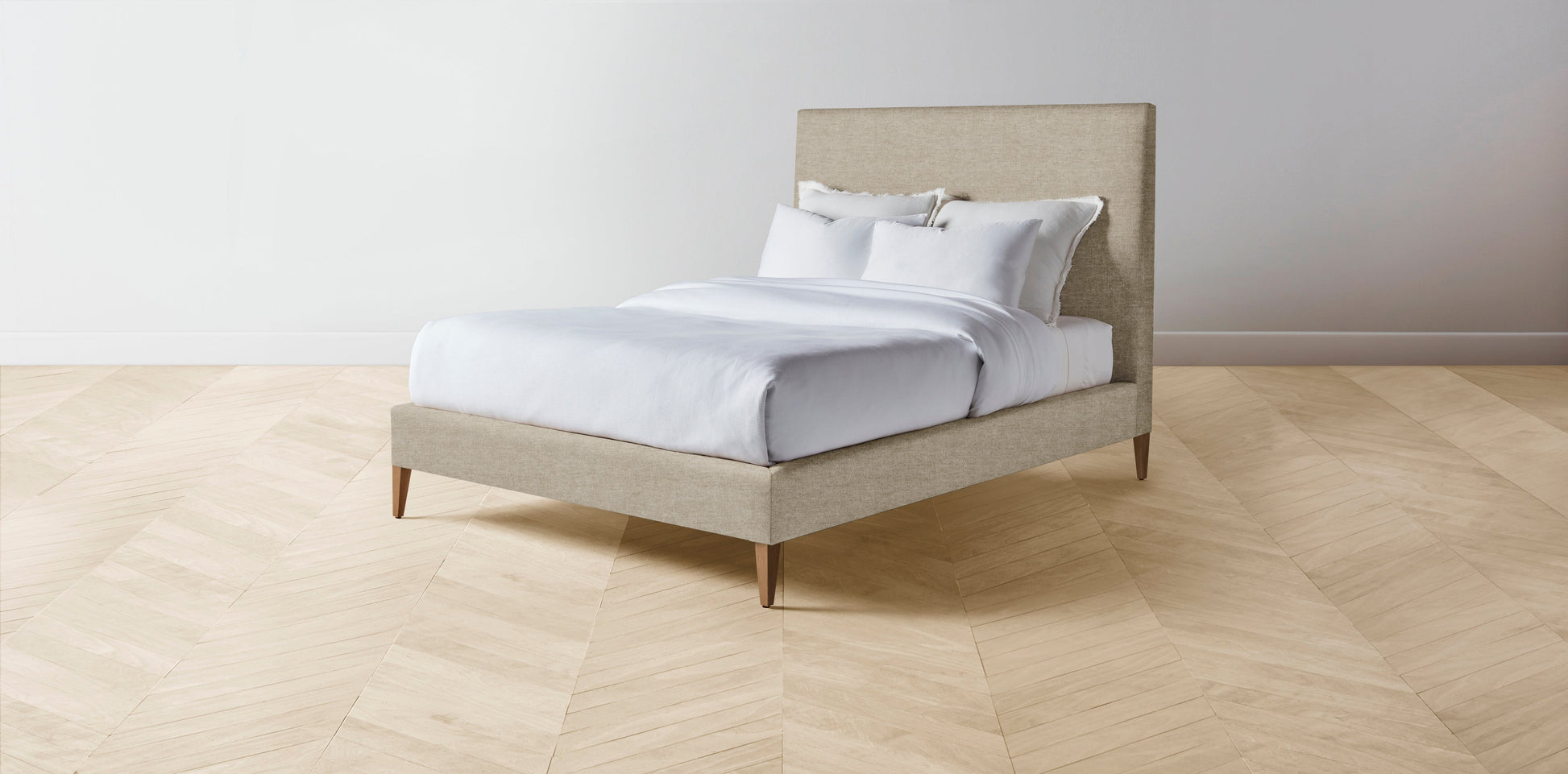 The Essex - Performance Stonewashed Linen Clamshell Bed - 60" Headboard - Upholstered on reverse