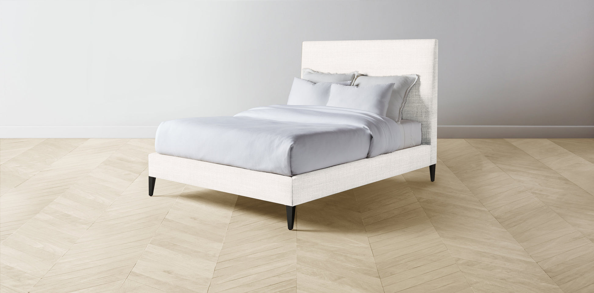The Essex - Performance Textured Tweed Snow Bed - 60" Headboard - Muslin on reverse