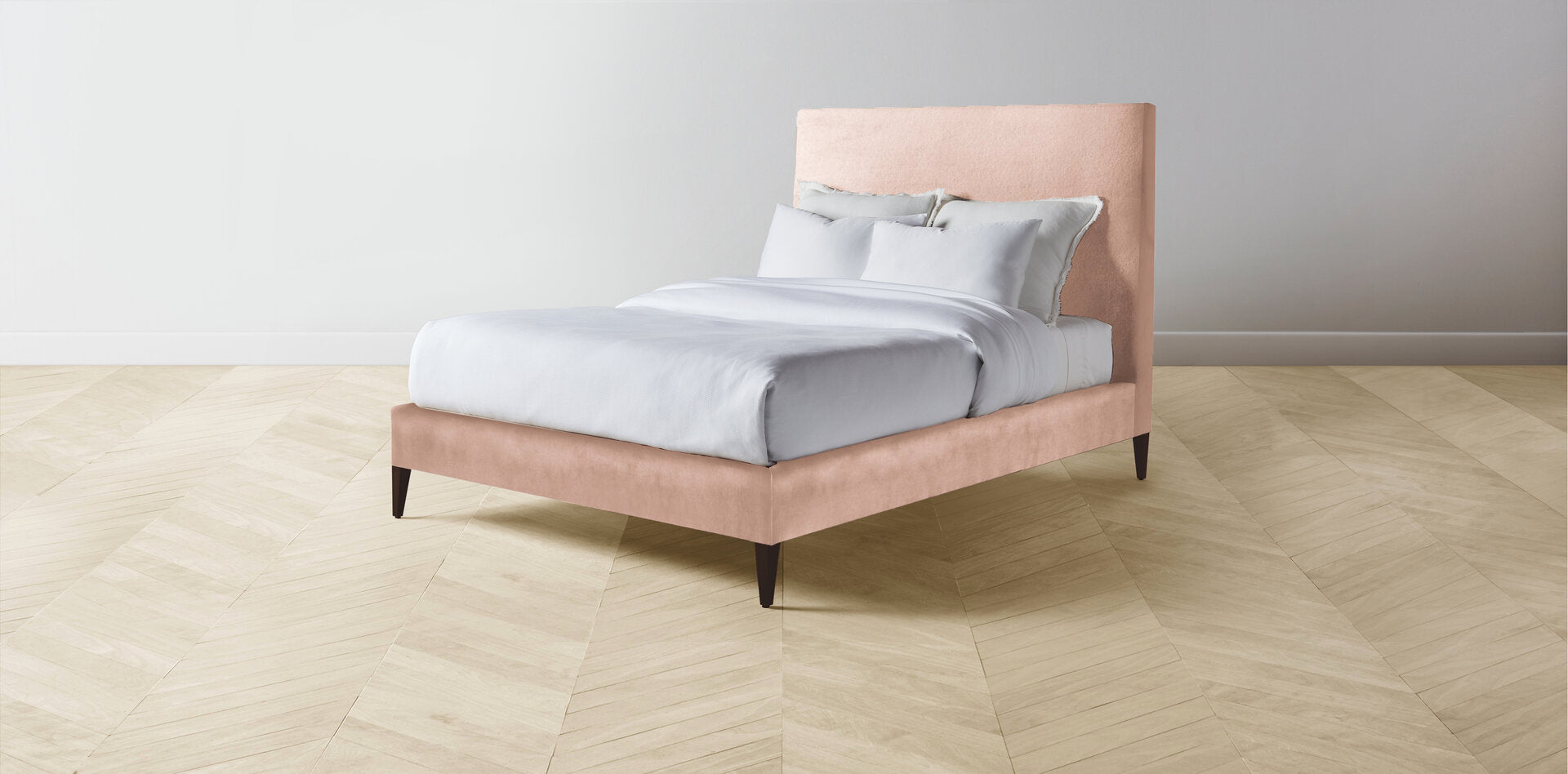 The Essex - Performance Velvet Dusty Rose Bed - 56" Headboard - Muslin on reverse