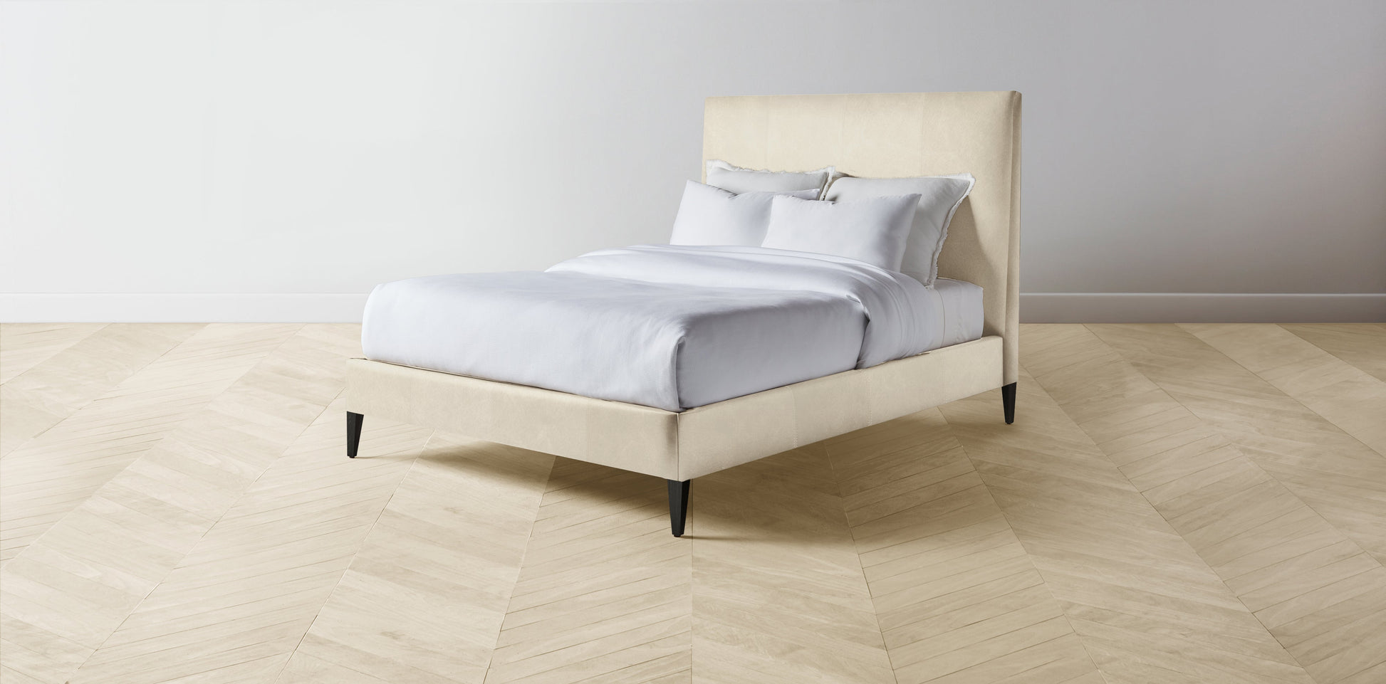 The Essex - Tuscan Leather Bisque Bed - 60" Headboard - Muslin on reverse