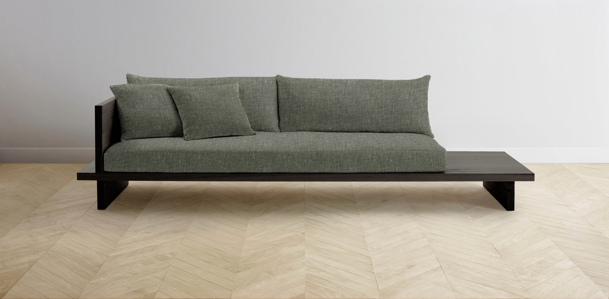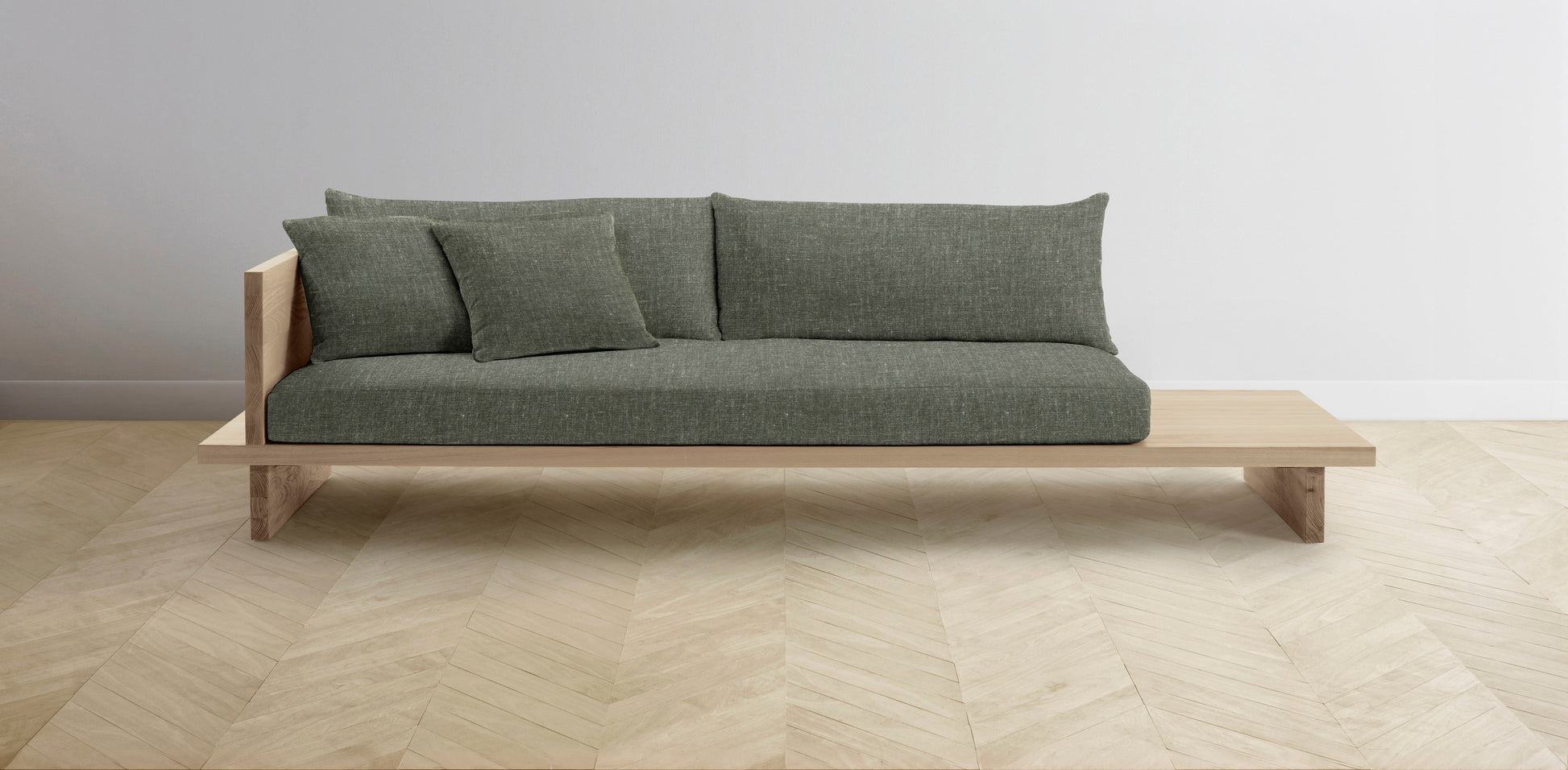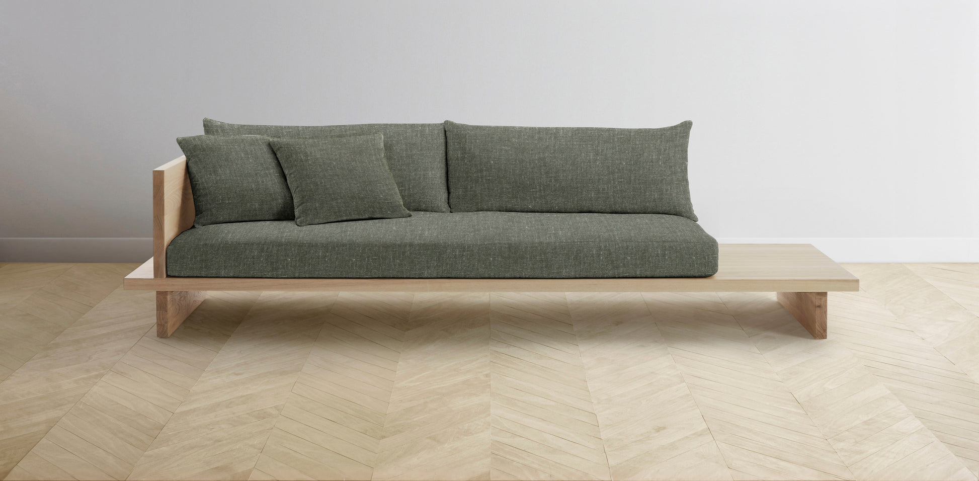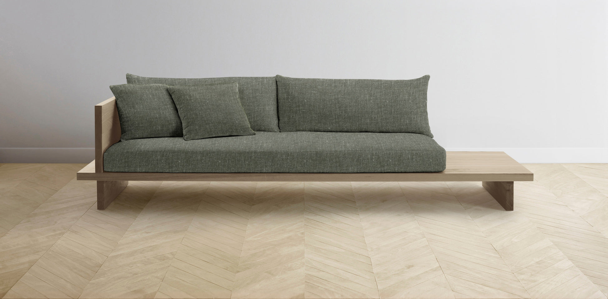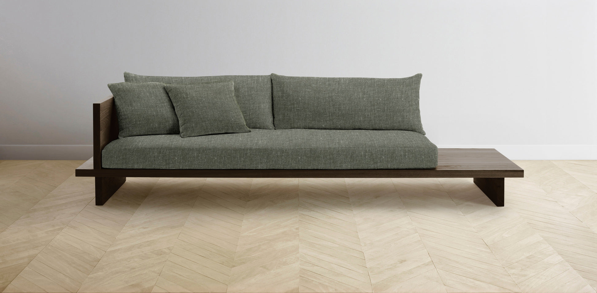 The Muir Arm on Left - Belgian Linen Thyme Sofa