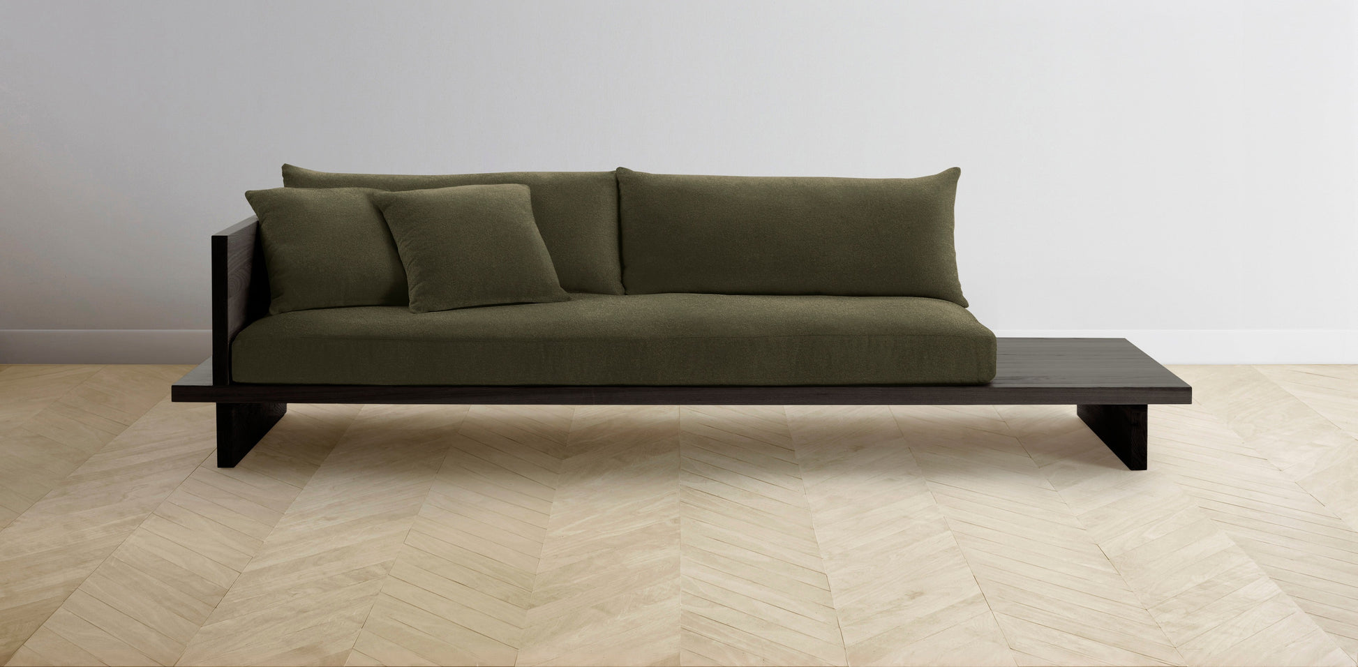 The Muir Arm on Left - Mohair Moss Sofa