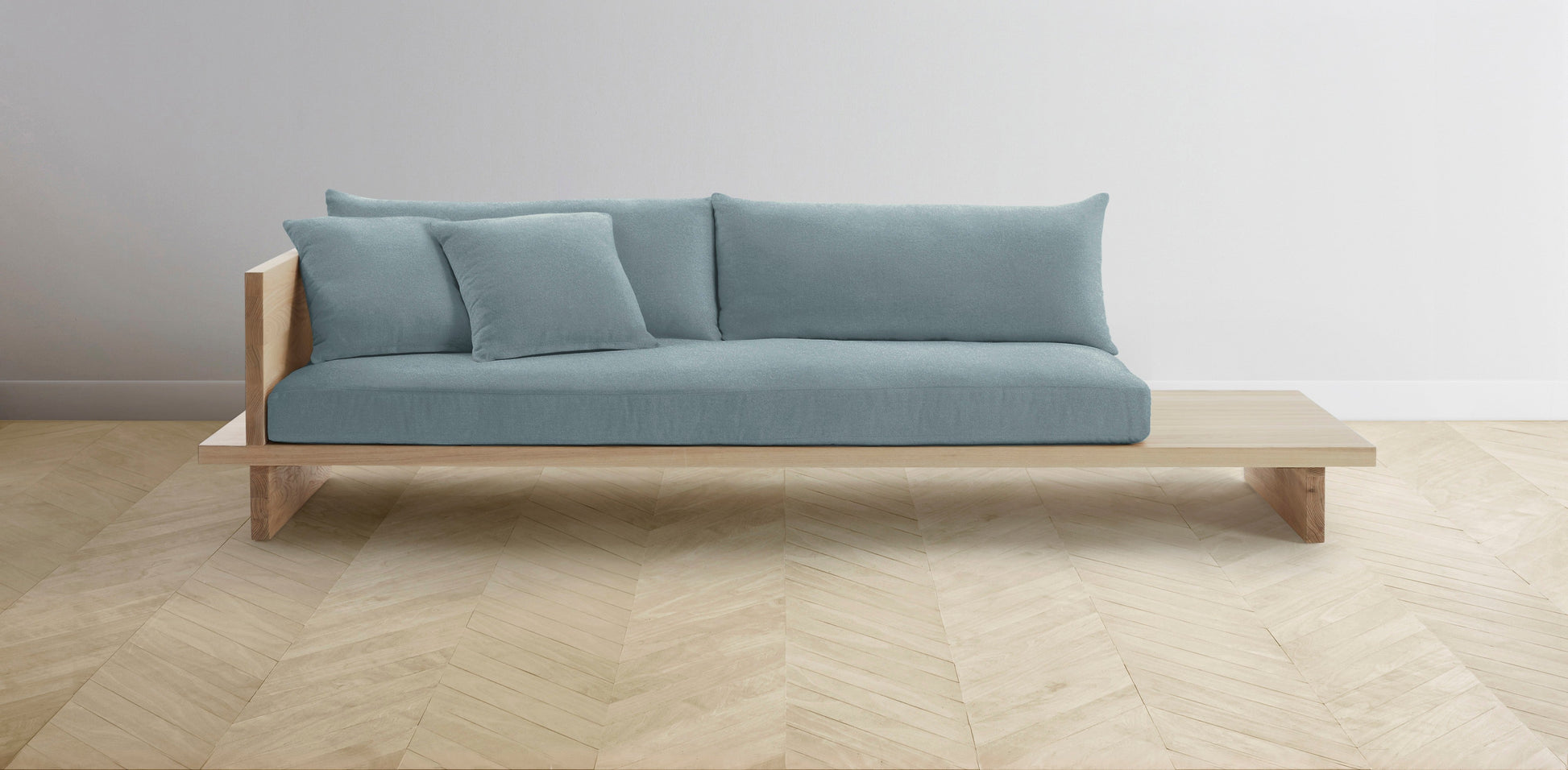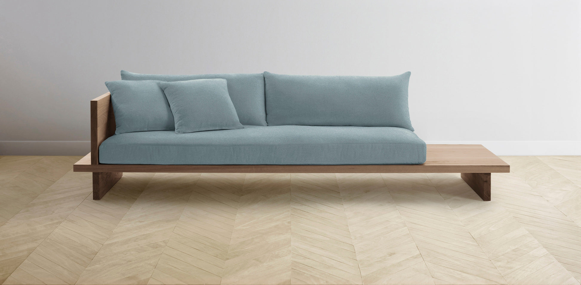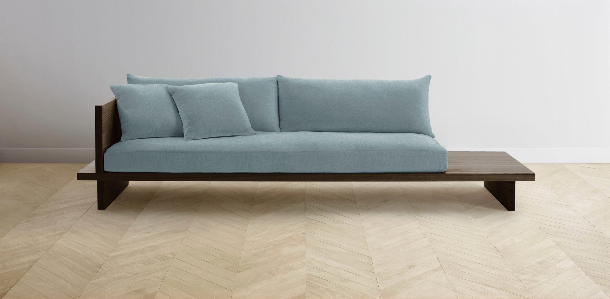 The Muir Arm on Left - Mohair Slate Blue Sofa