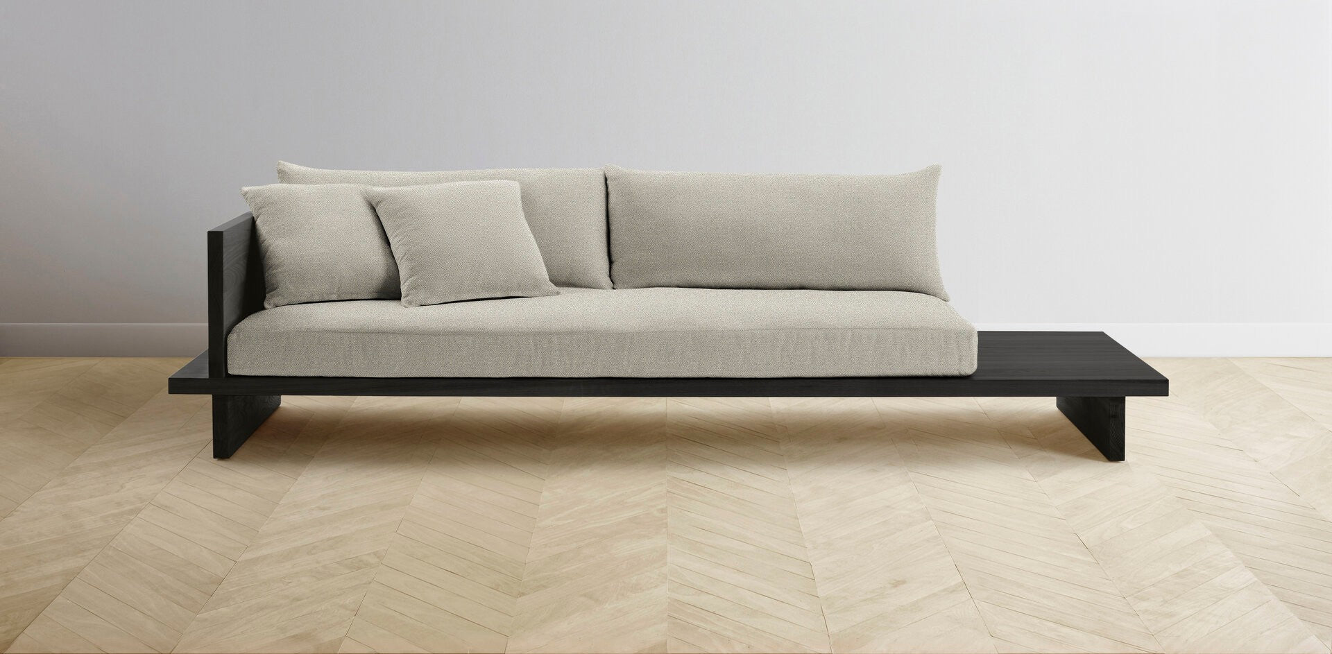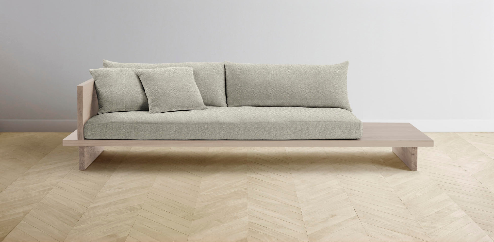 The Muir Arm on Left - Performance Basketweave Pebble Sofa