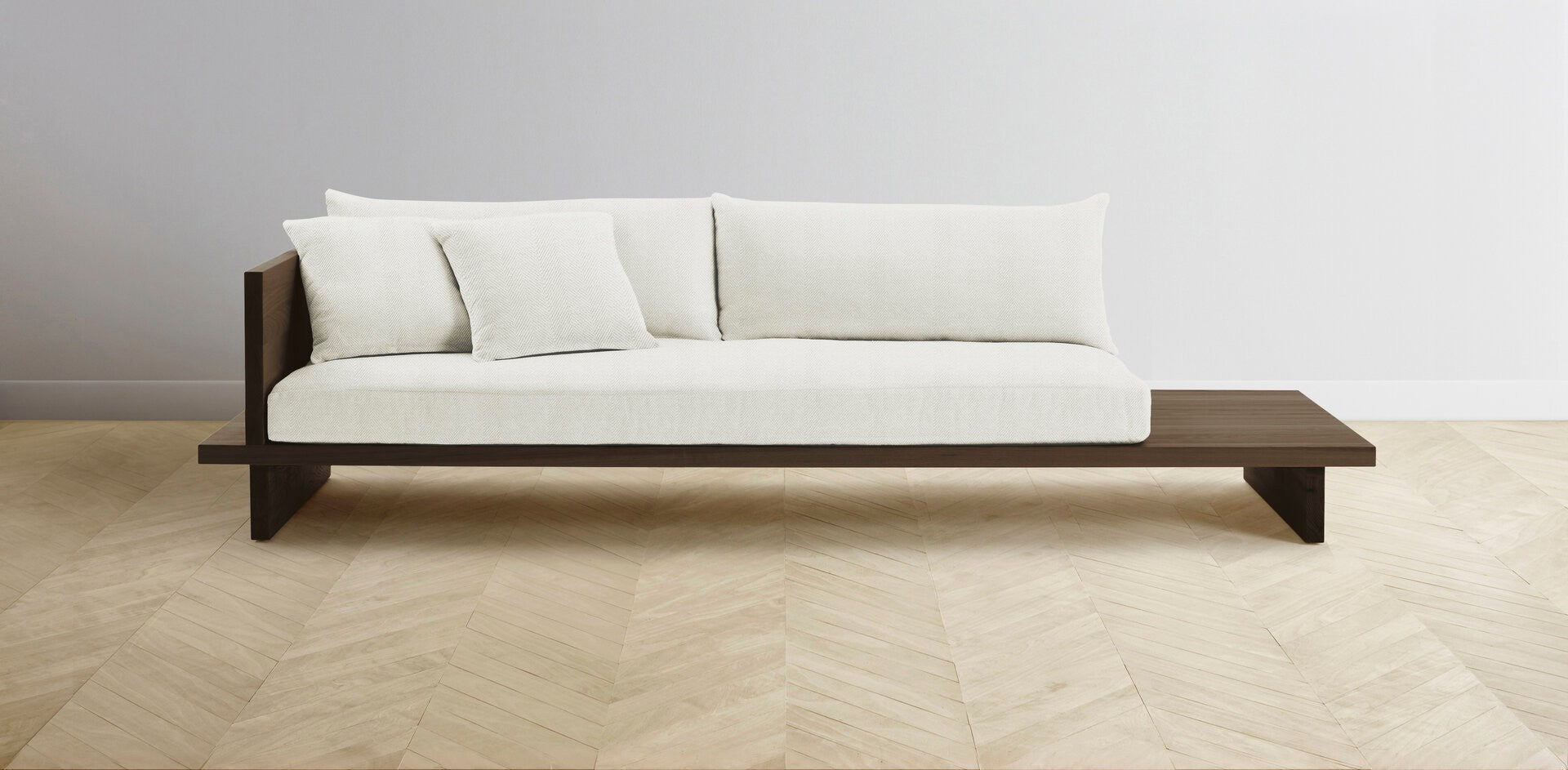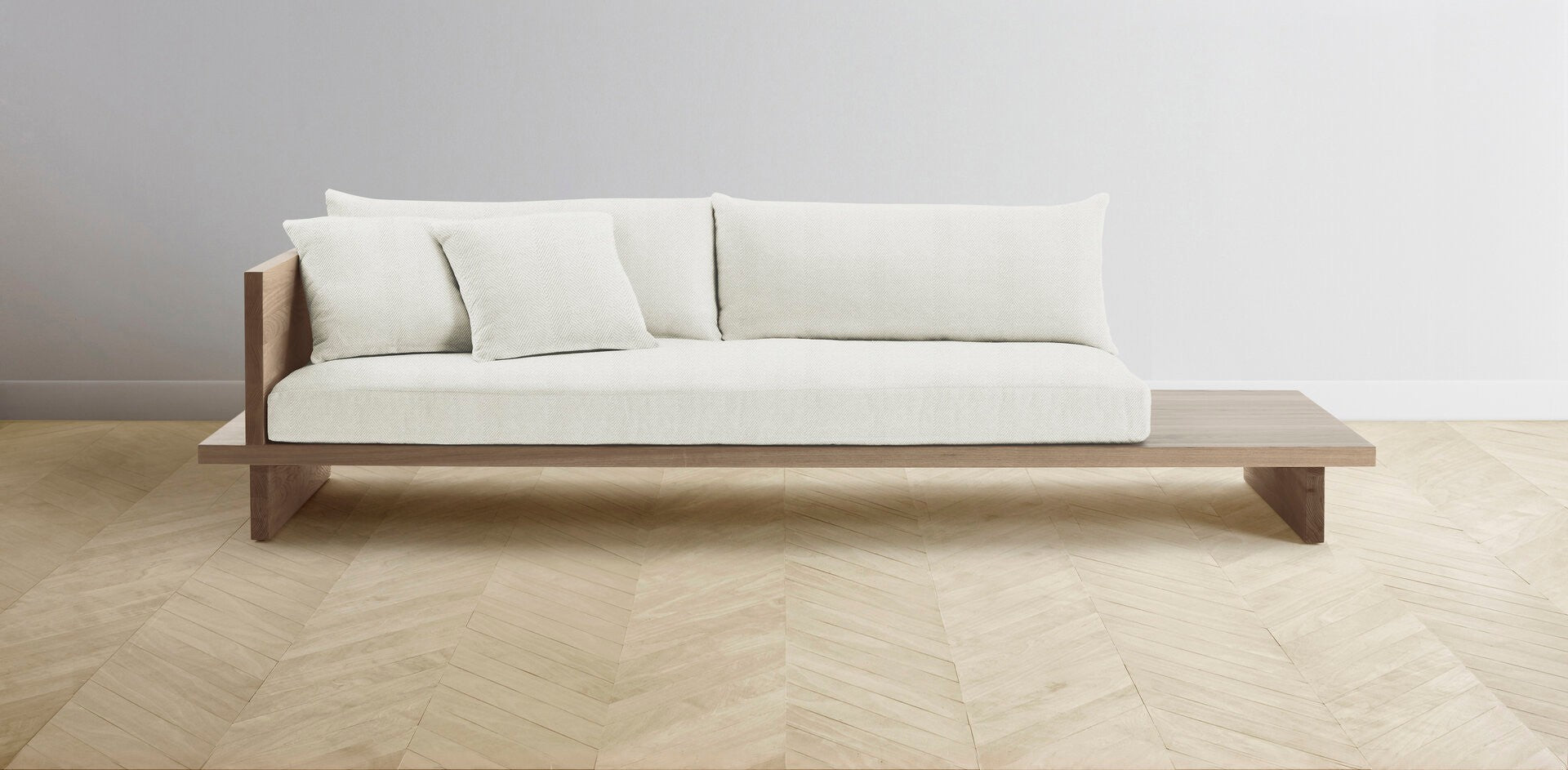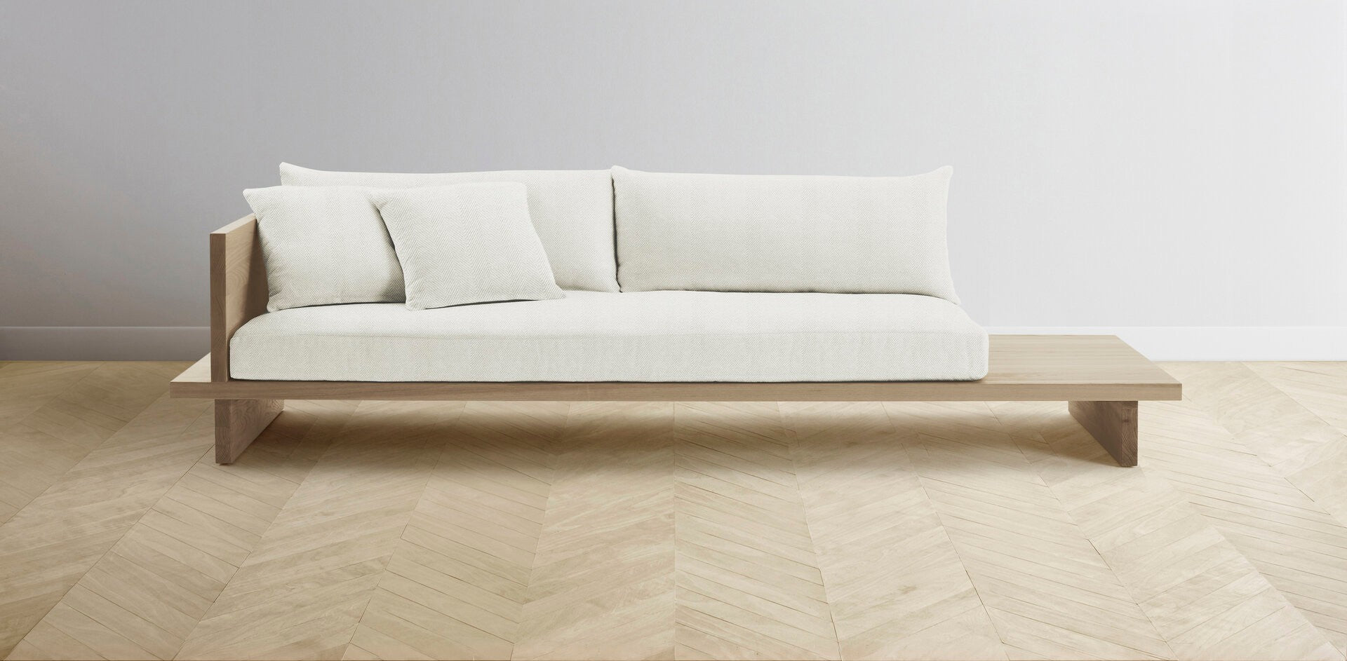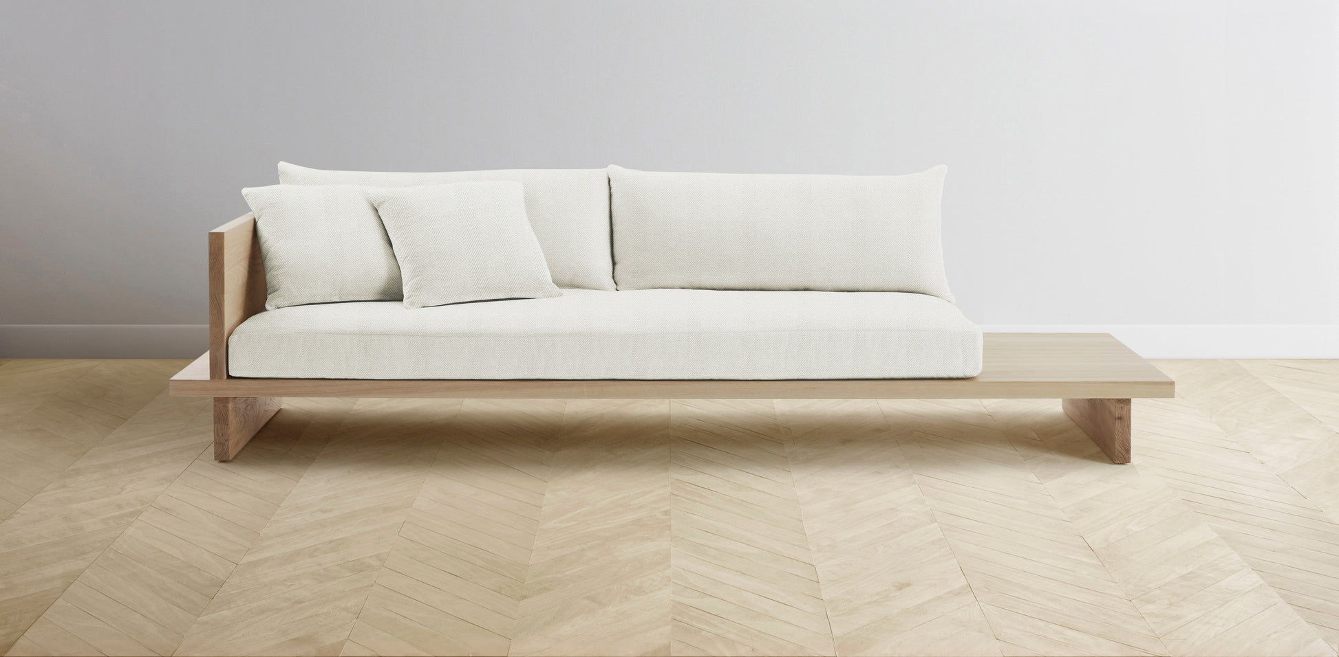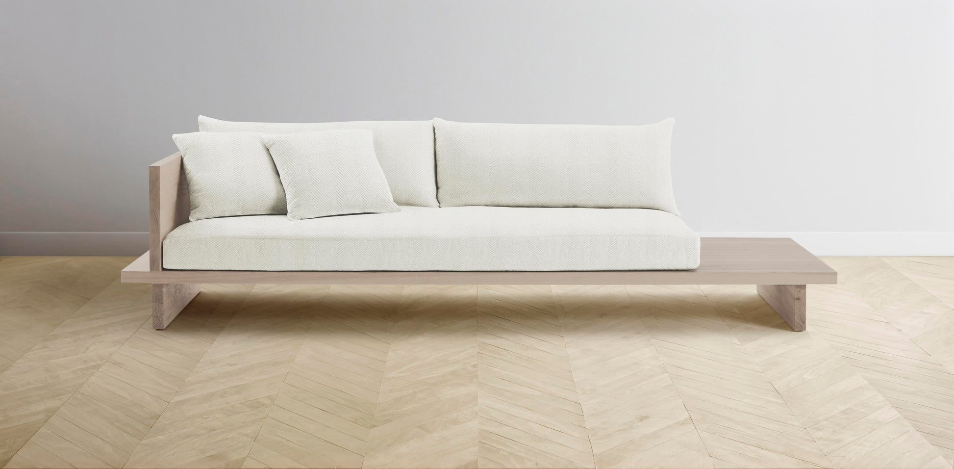 The Muir Arm on Left - Performance Chevron Powder Sofa