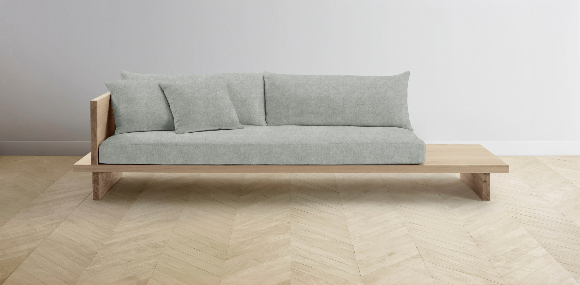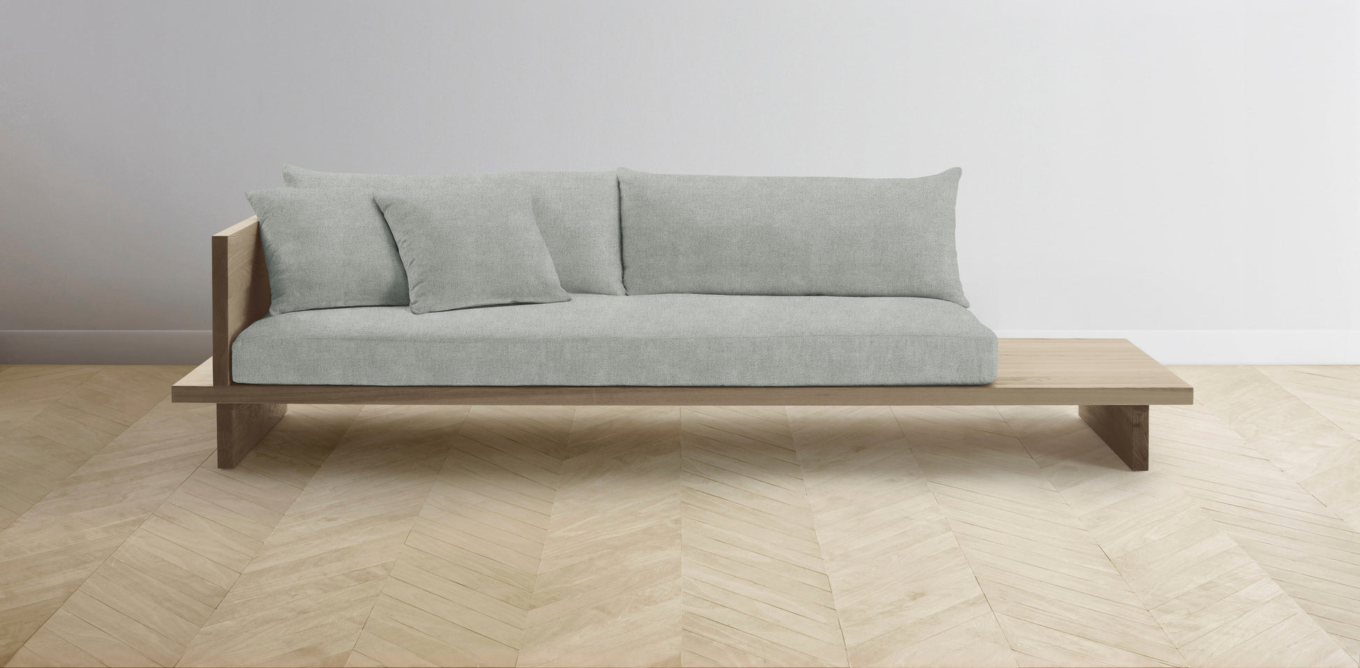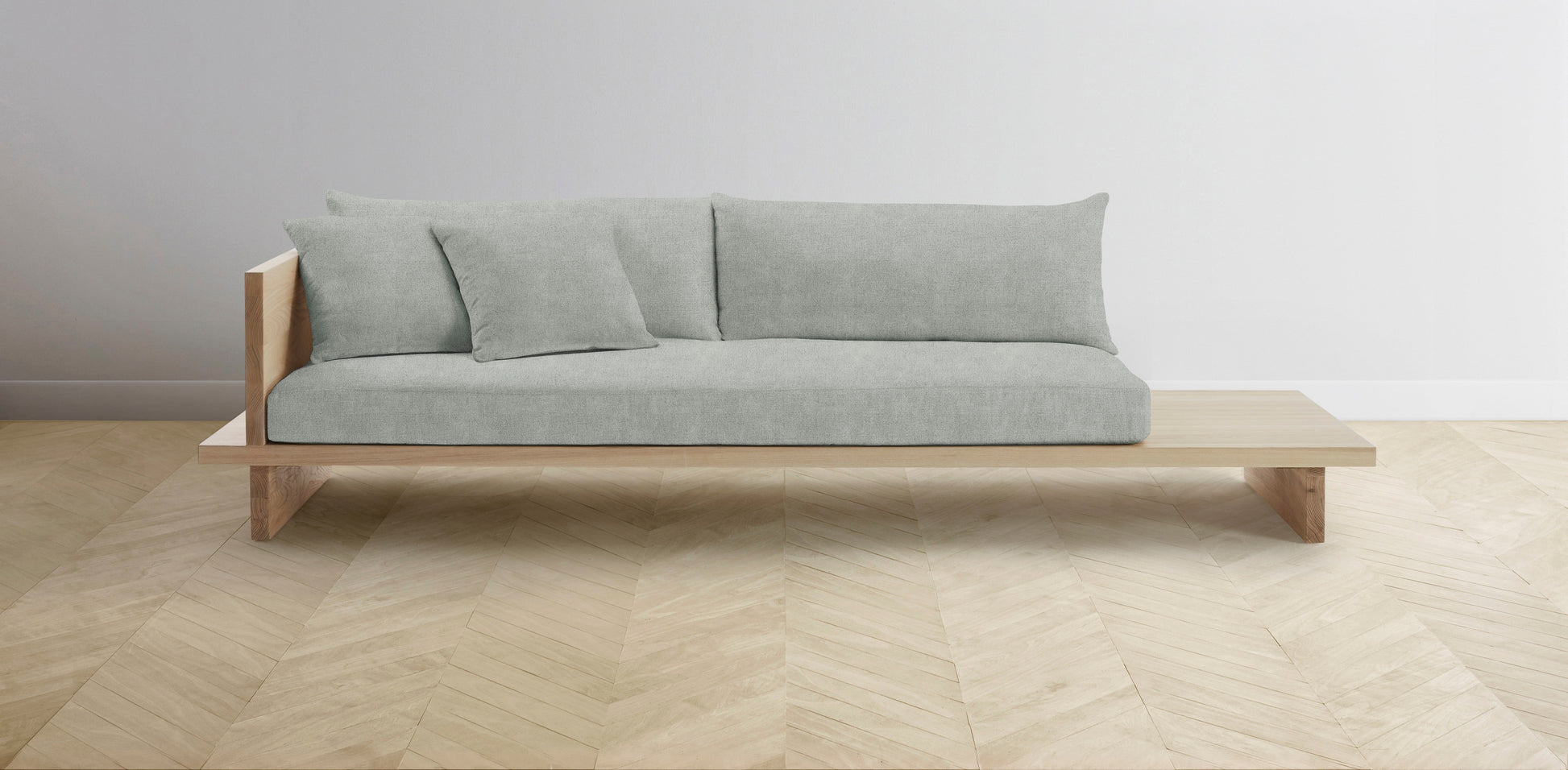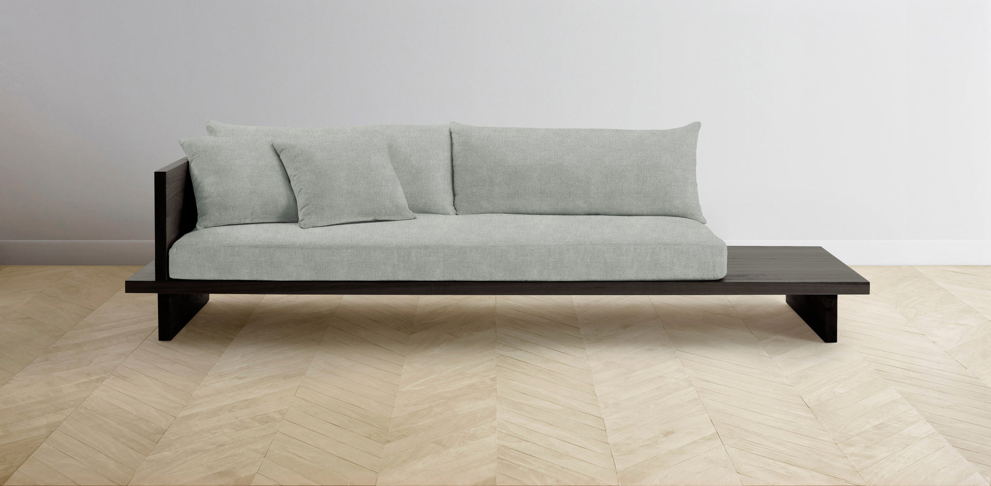 The Muir Arm on Left - Performance Melange Weave Seaglass Sofa