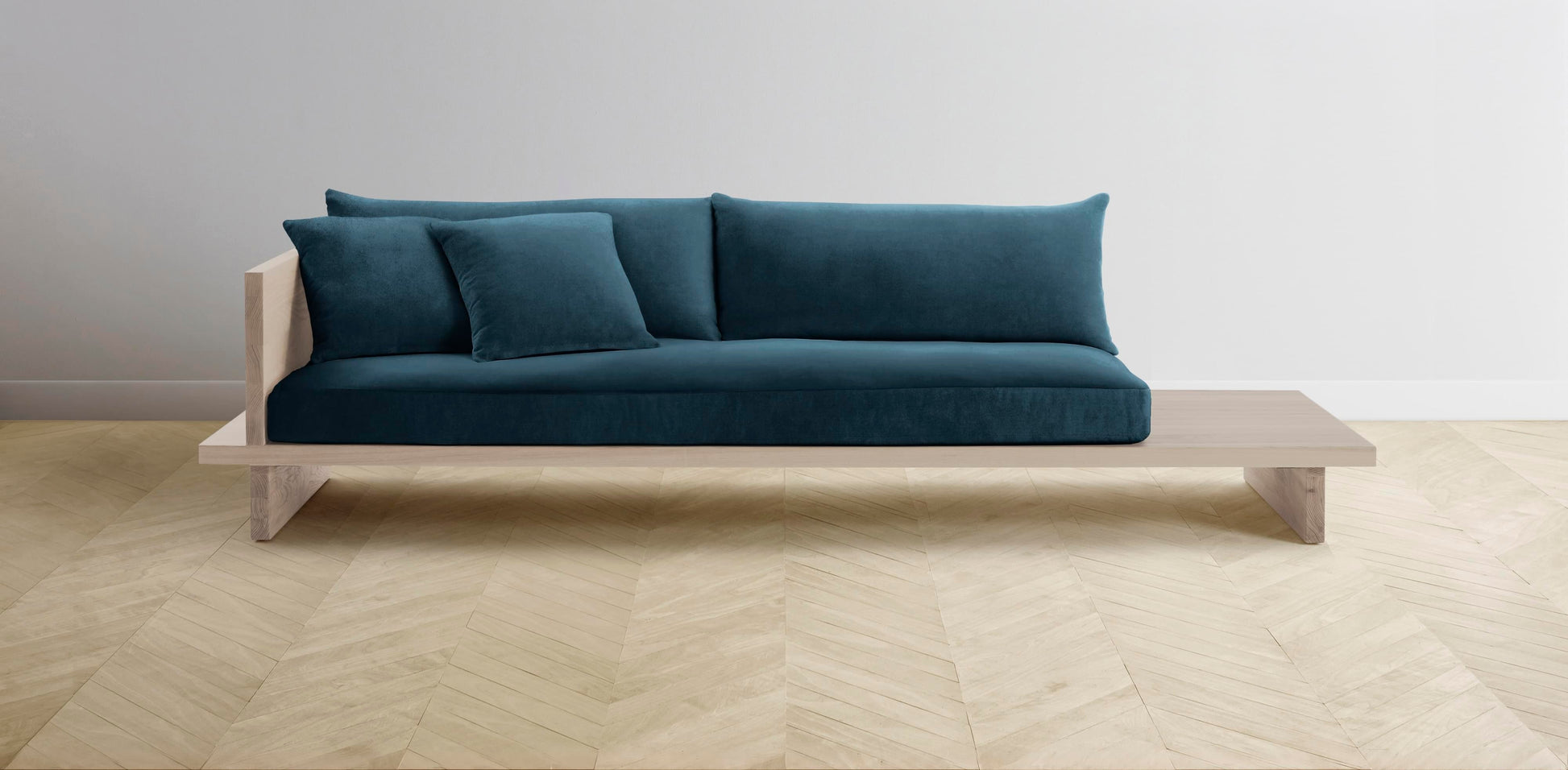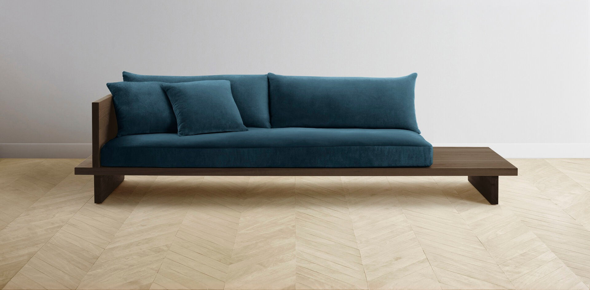 The Muir Arm on Left - Performance Velvet Lagoon Sofa