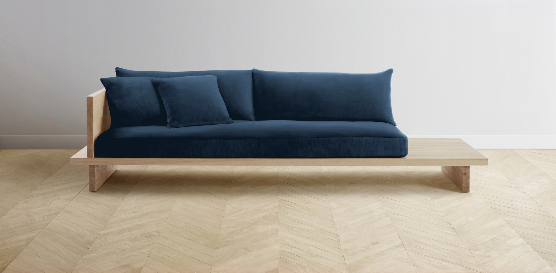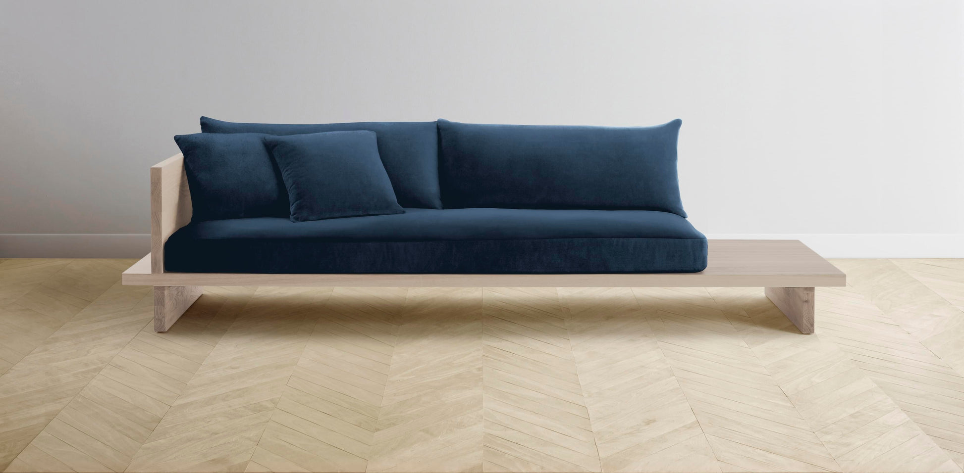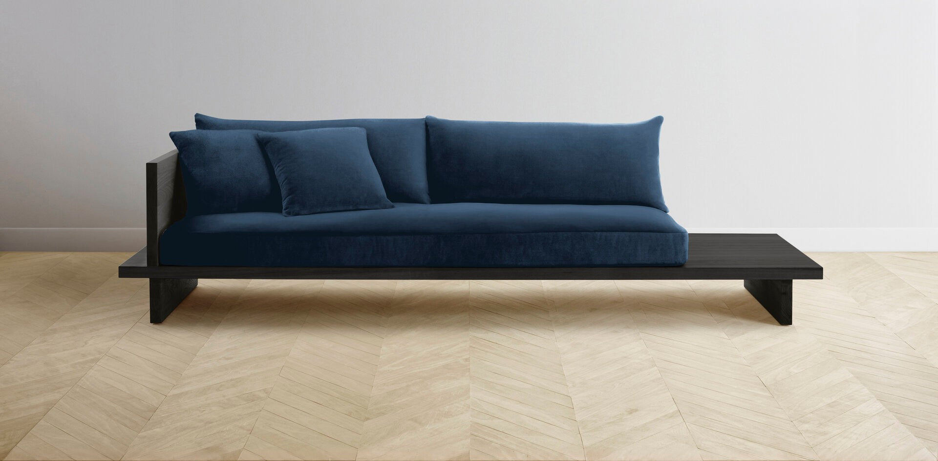 The Muir Arm on Left - Performance Velvet Sapphire Sofa