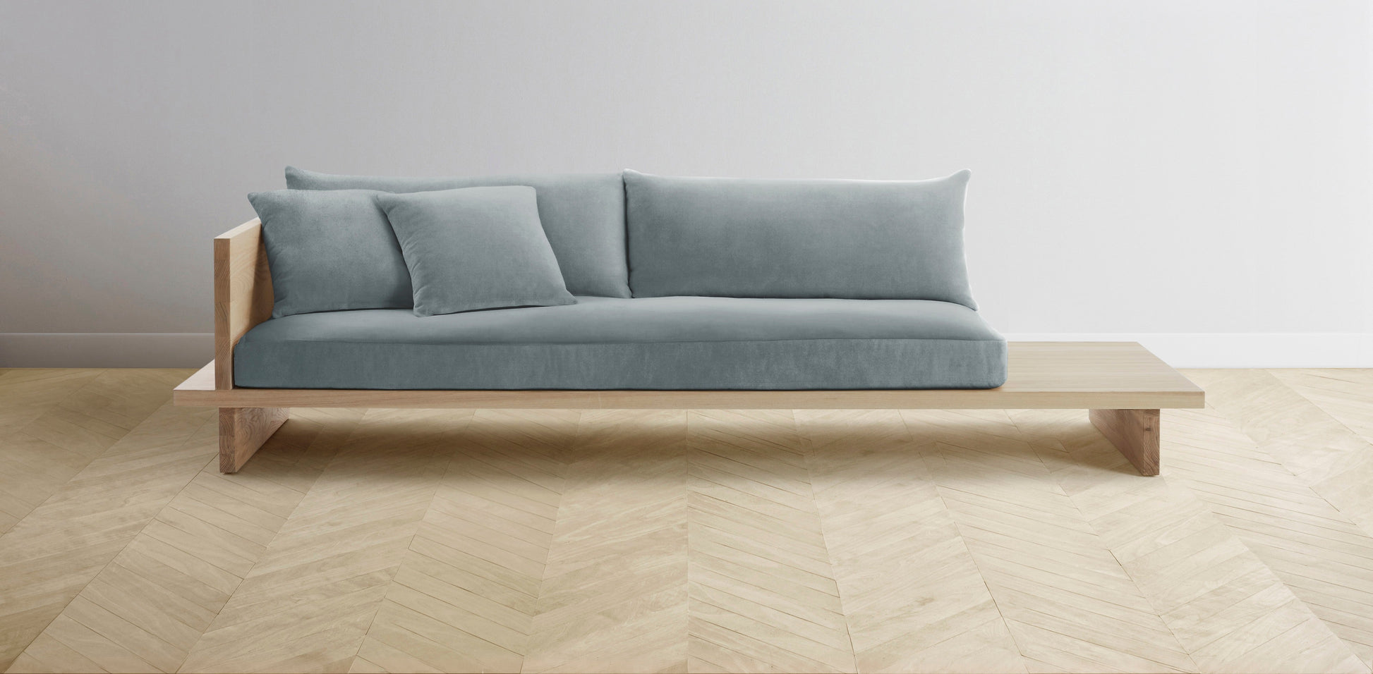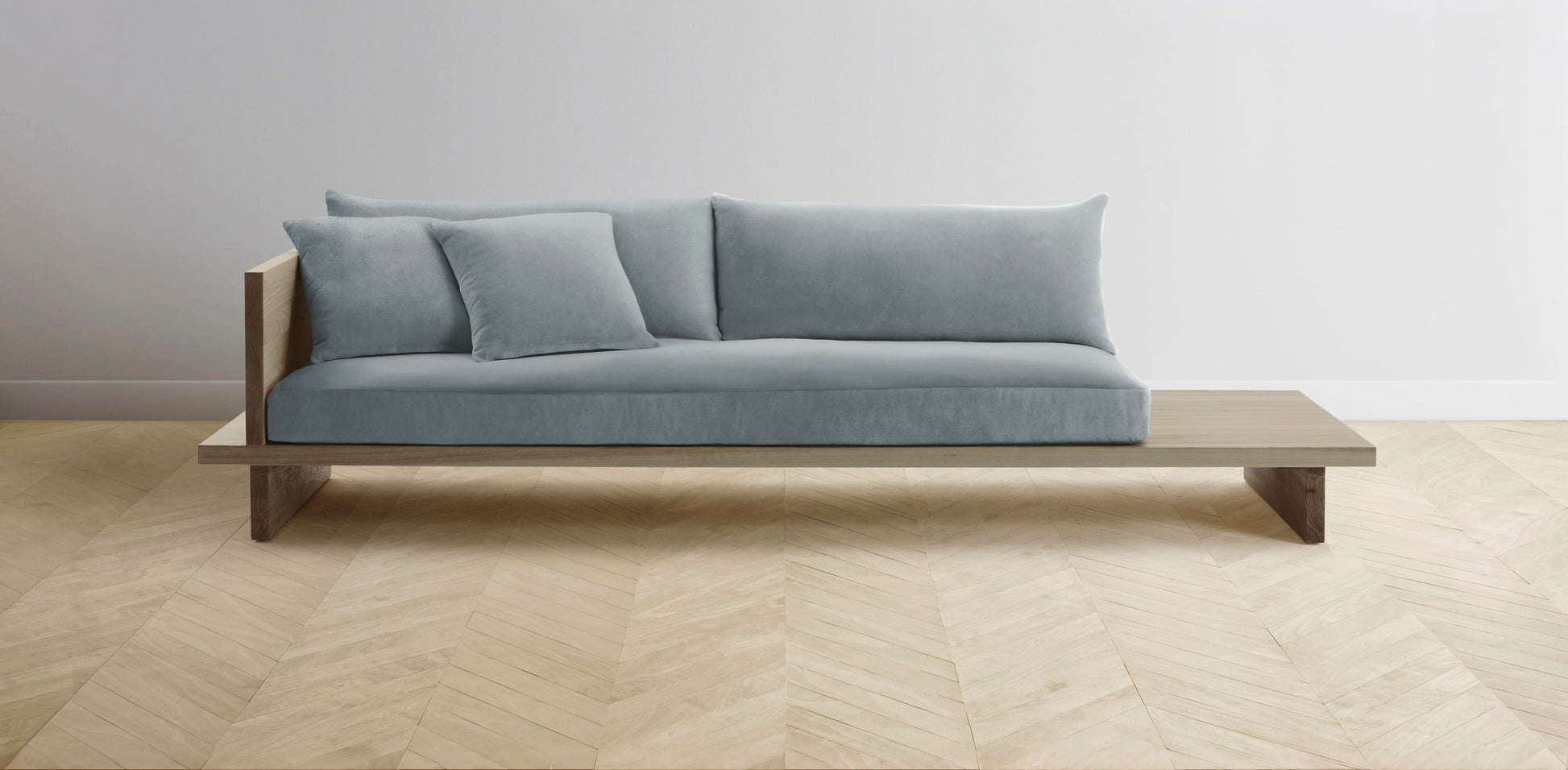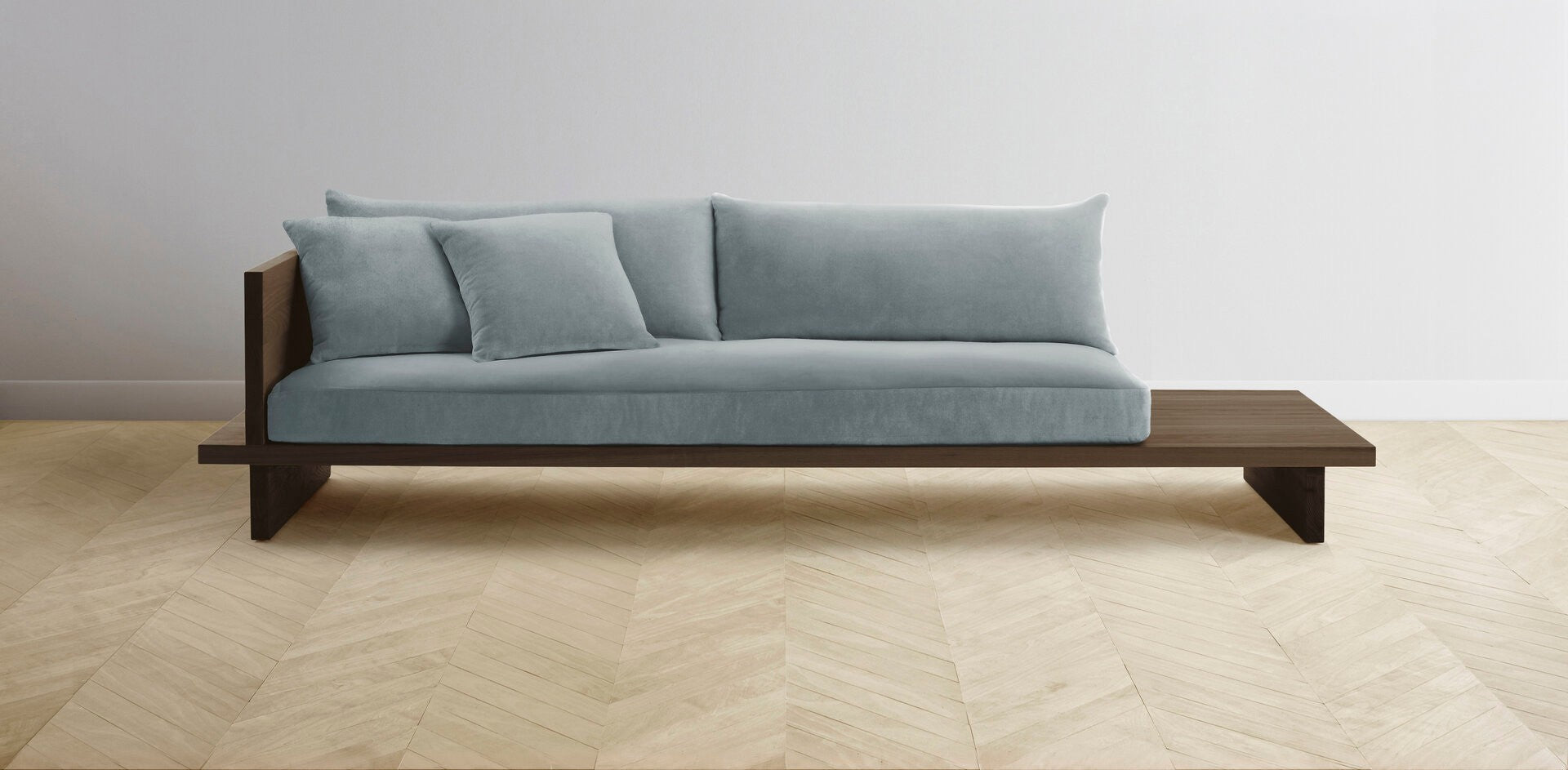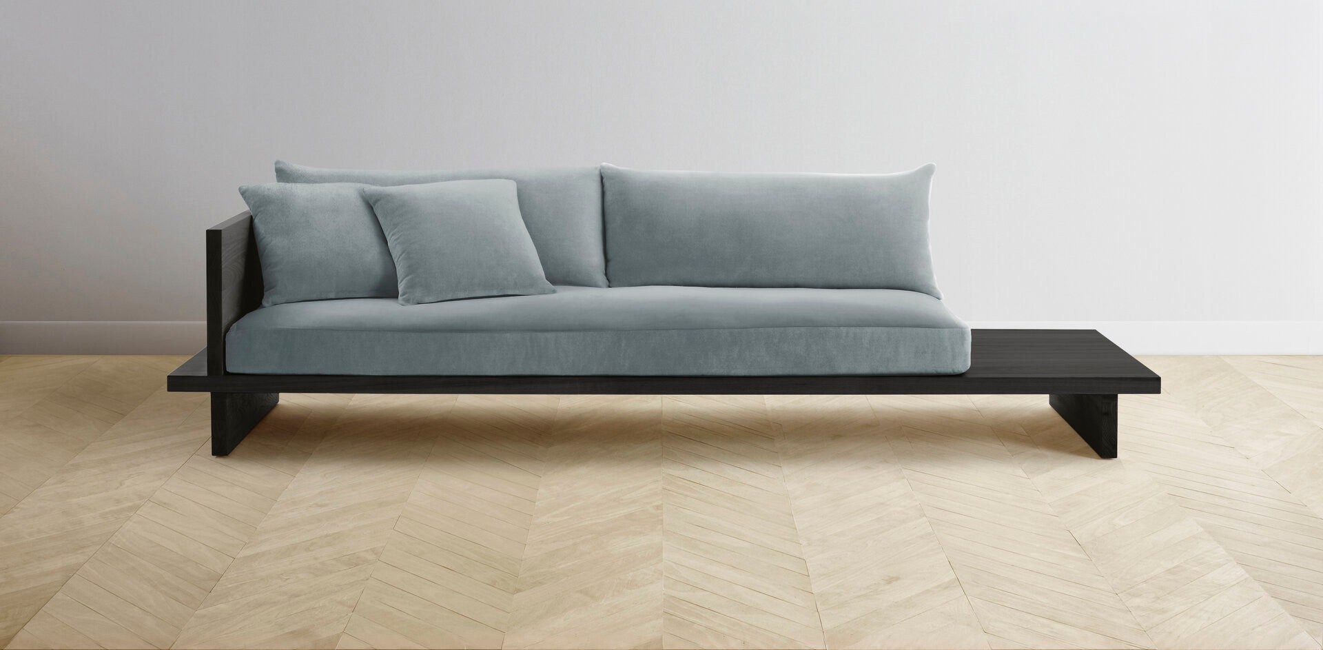 The Muir Arm on Left - Performance Velvet Seafoam Sofa
