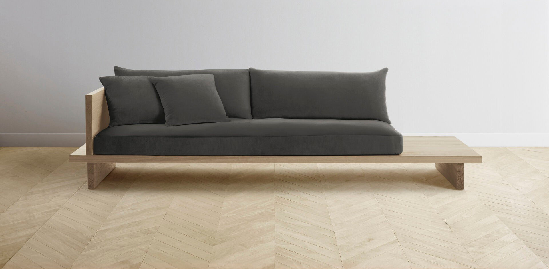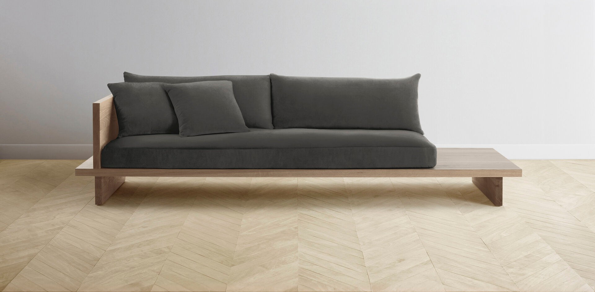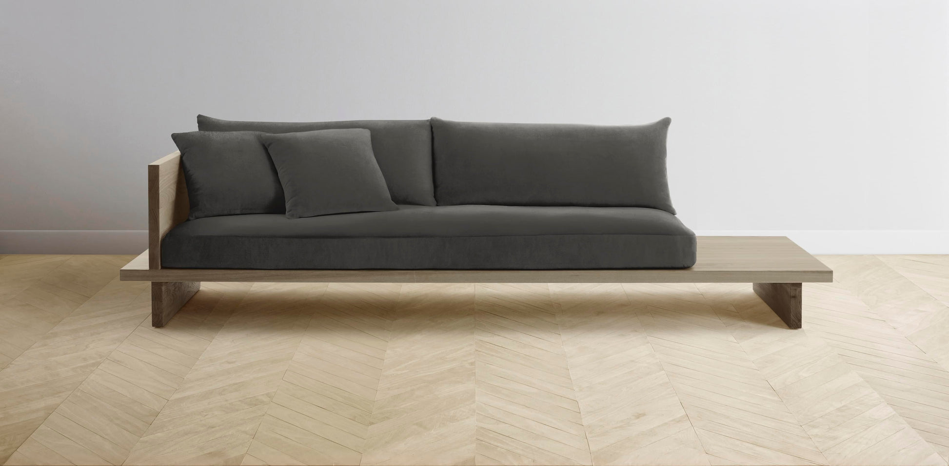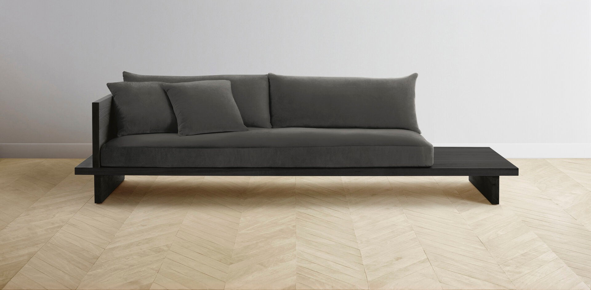 The Muir Arm on Left - Performance Velvet Slate Sofa