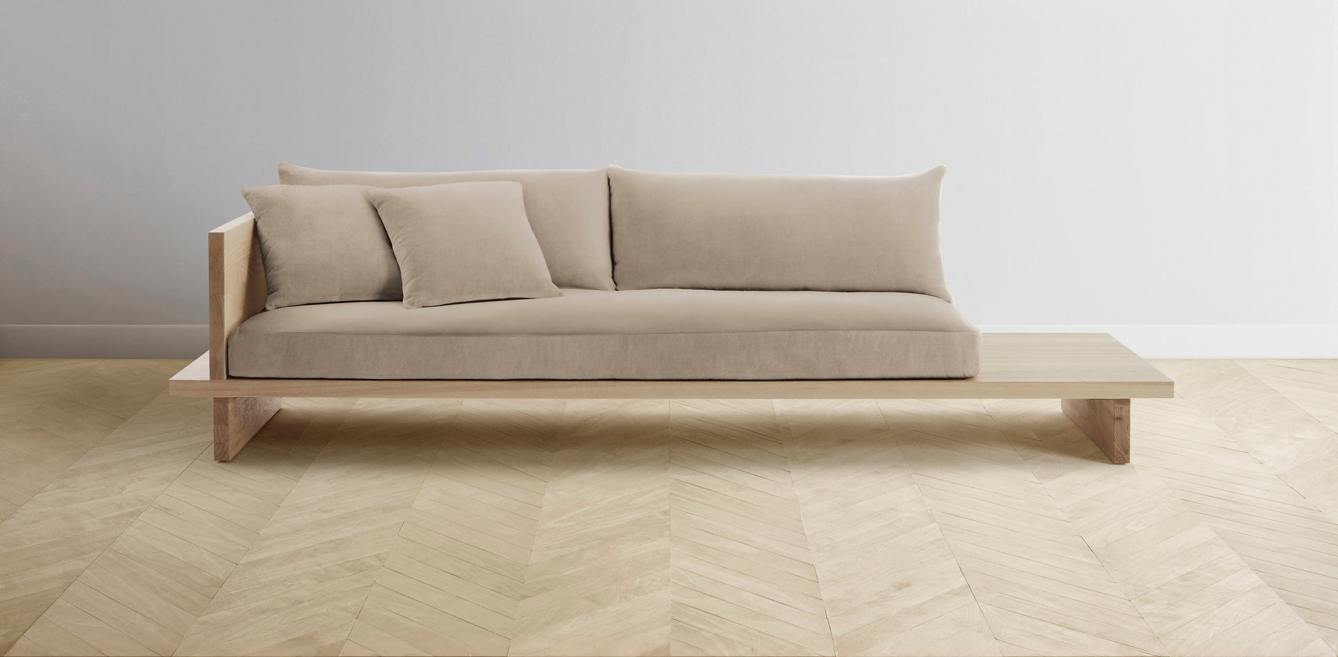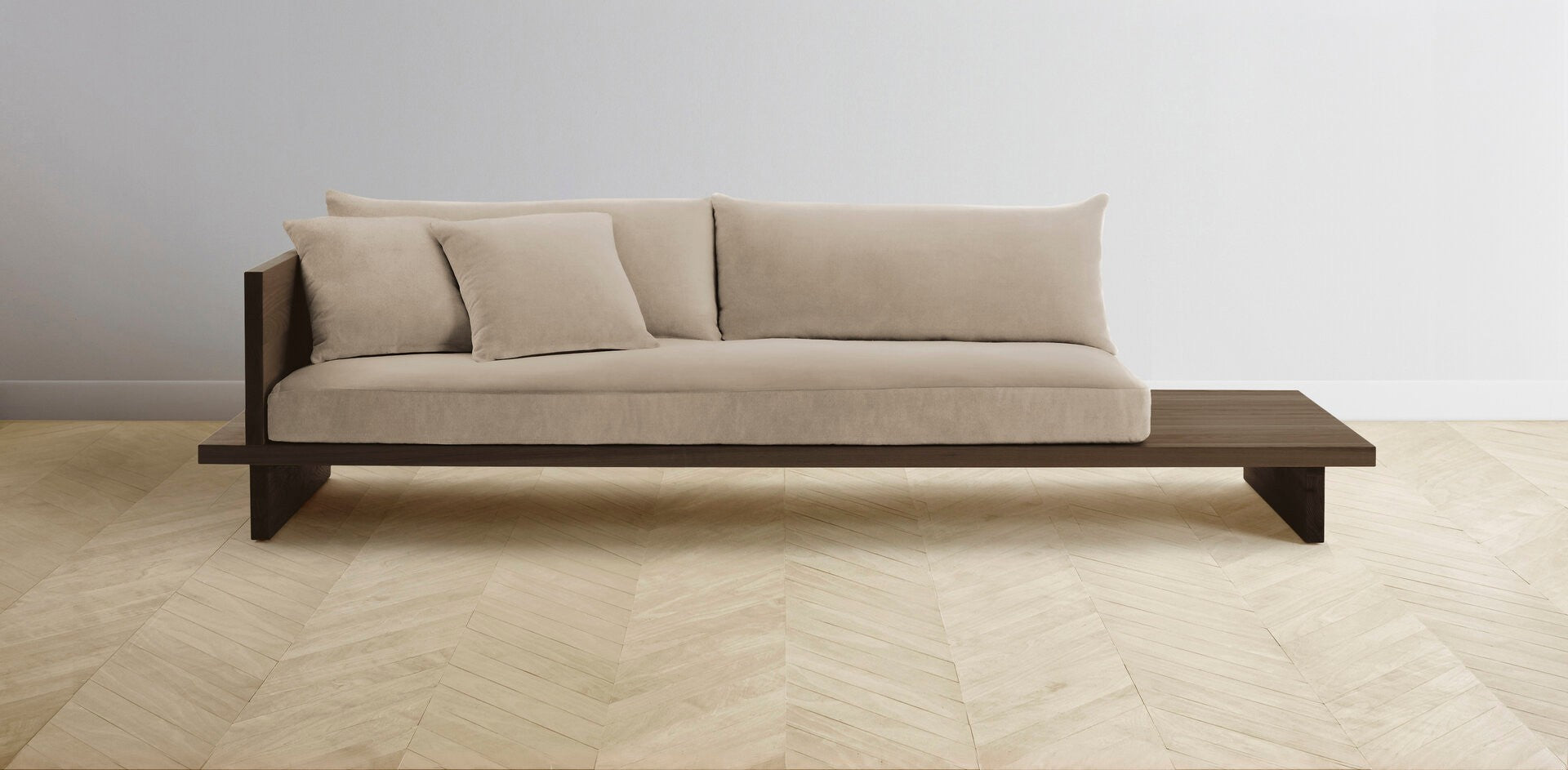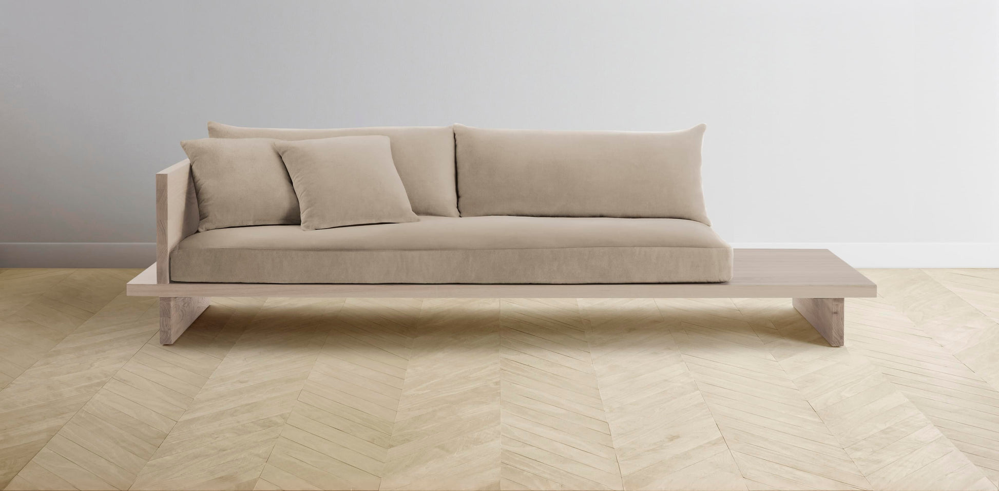 The Muir Arm on Left - Performance Velvet Taupe Sofa