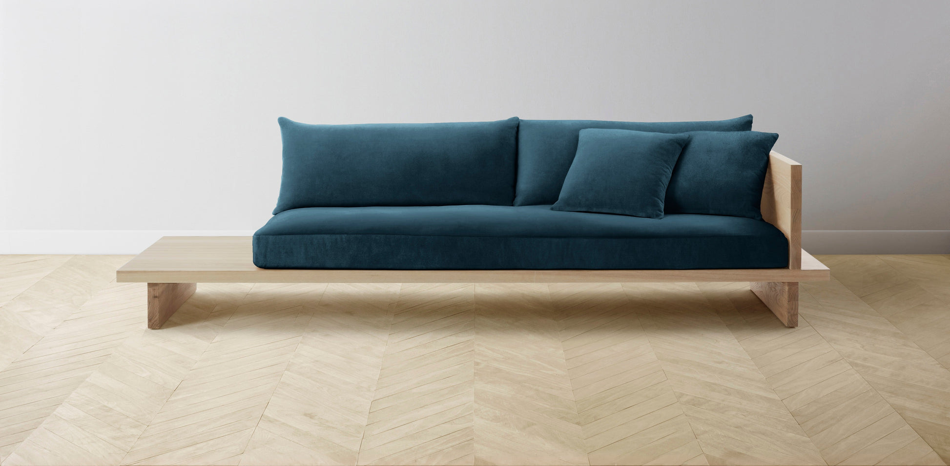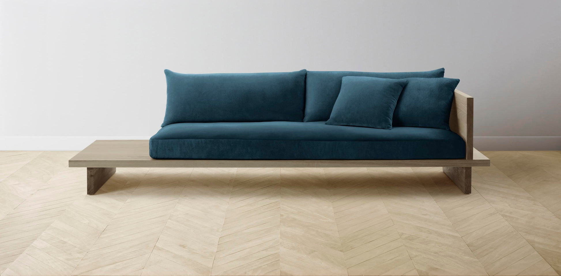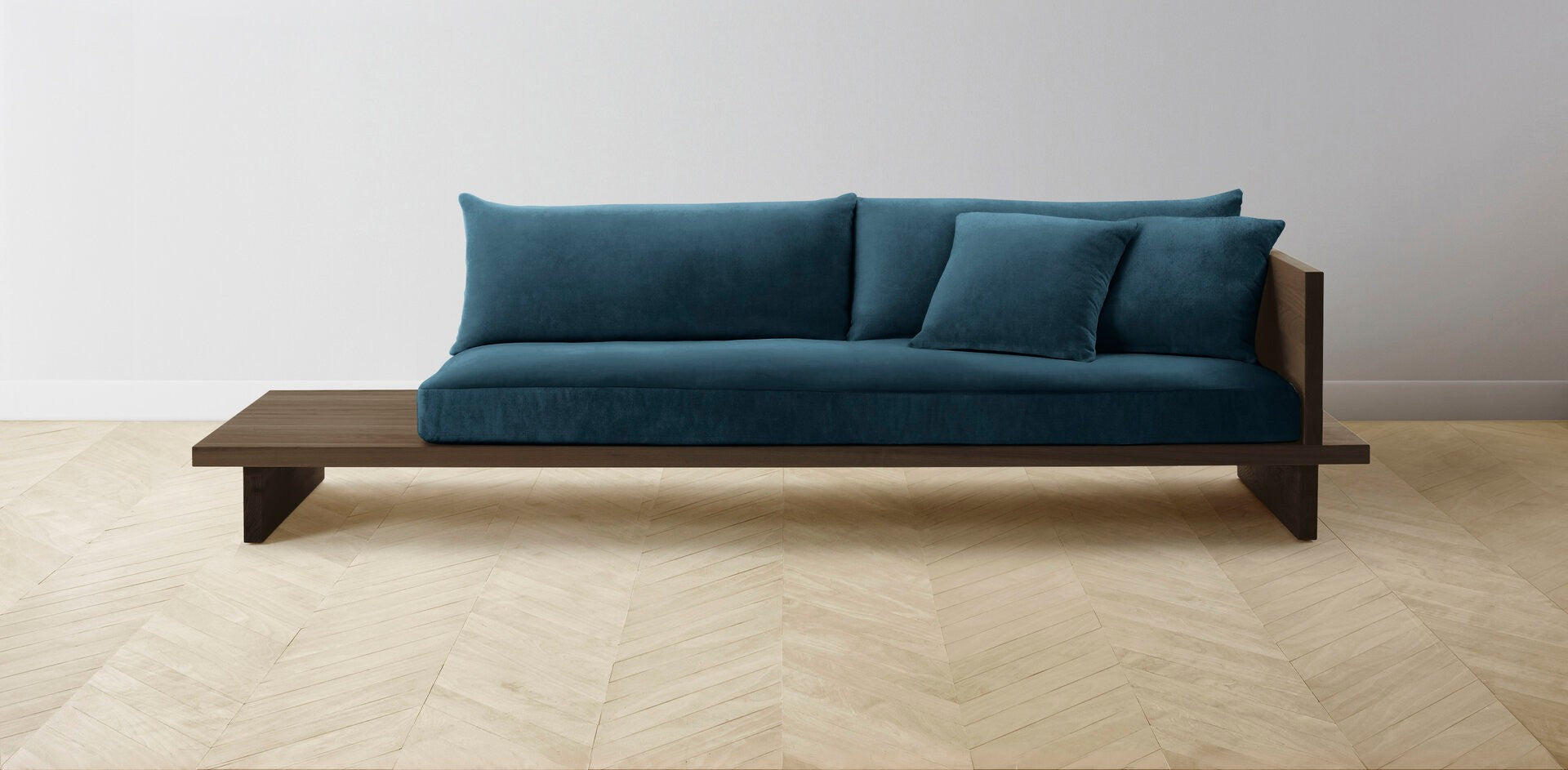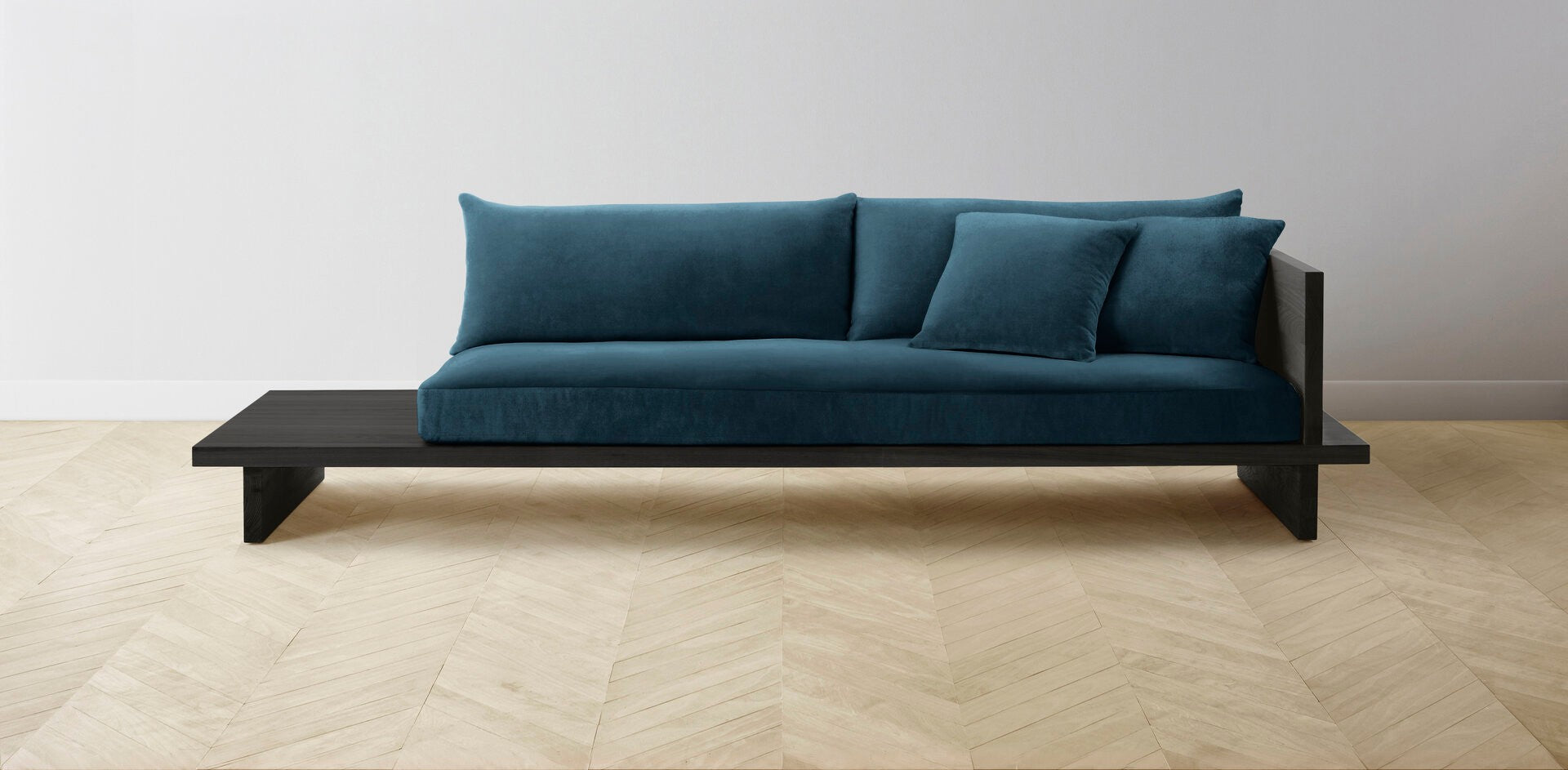 The Muir Arm on Right - Performance Velvet Lagoon Sofa