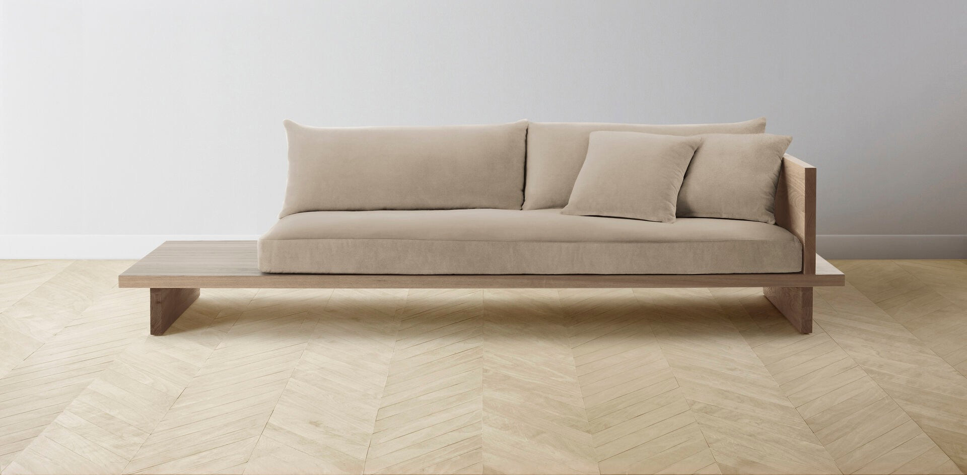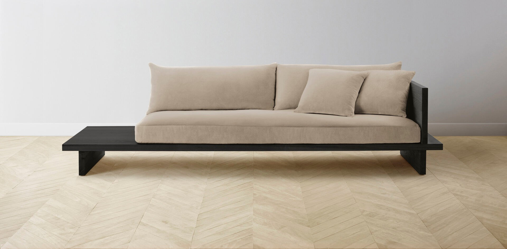 The Muir Arm on Right - Performance Velvet Taupe Sofa