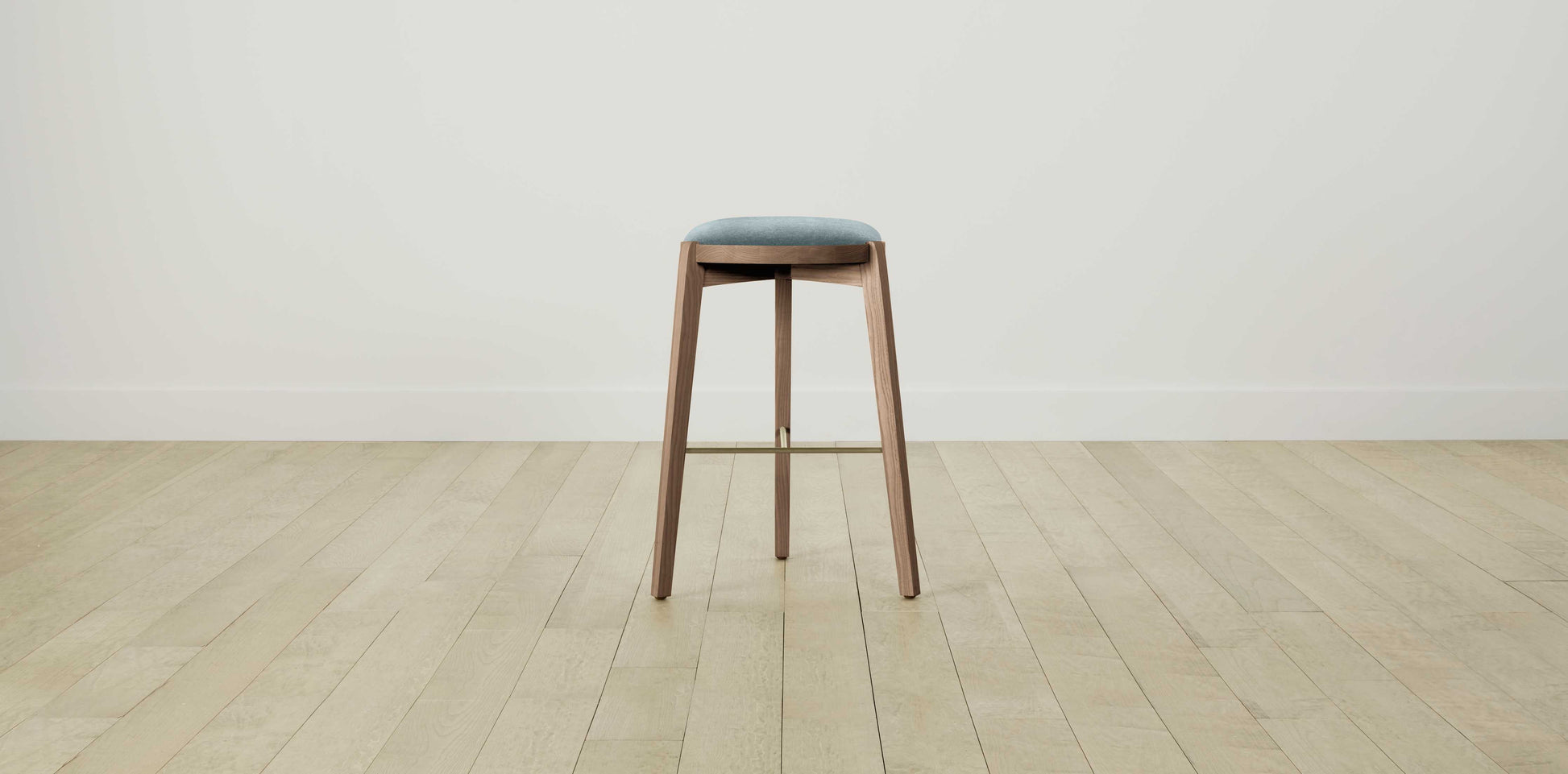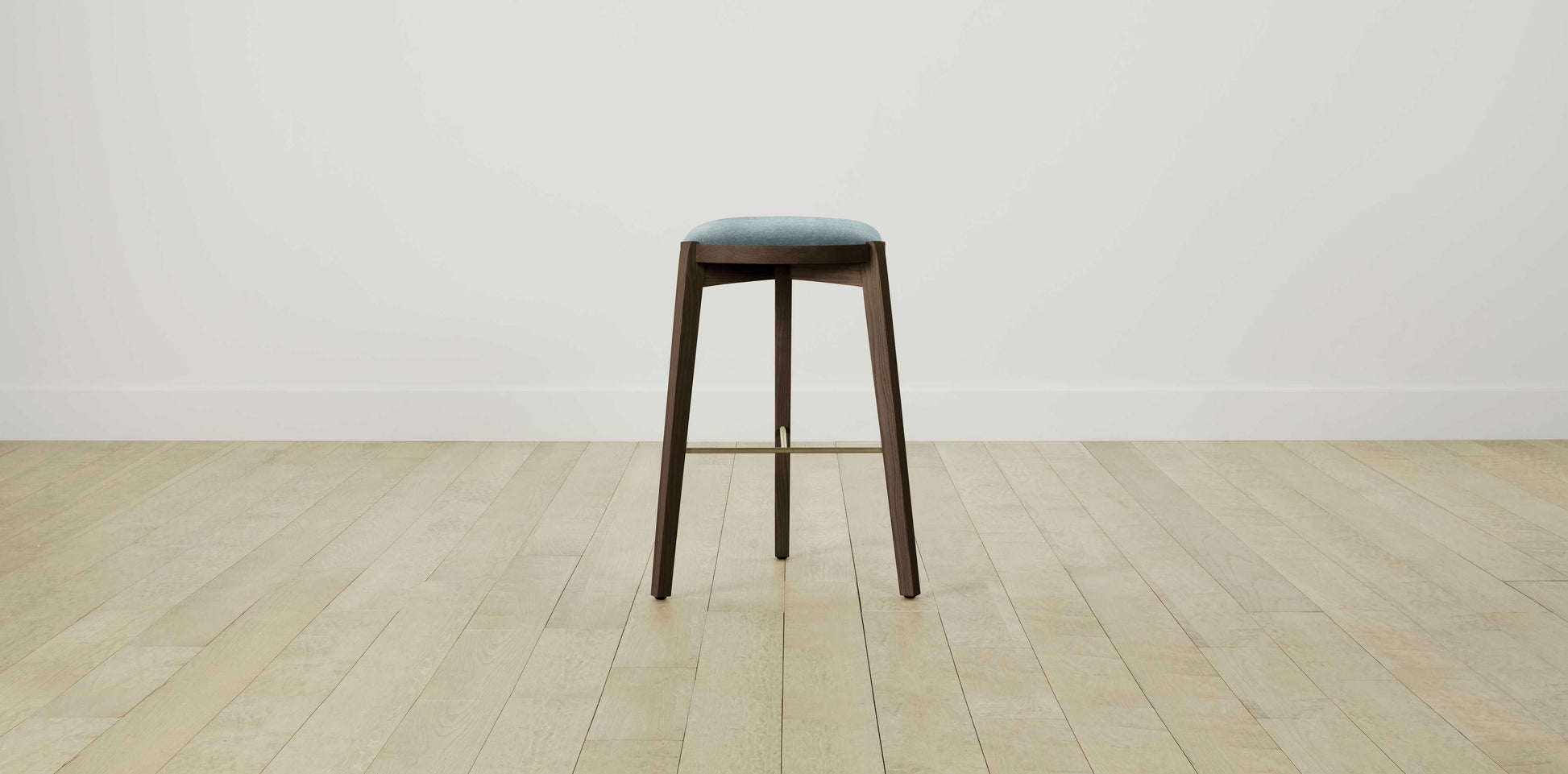 The Stanton with Brushed Brass - Mohair Slate Blue Bar and Counter Stool