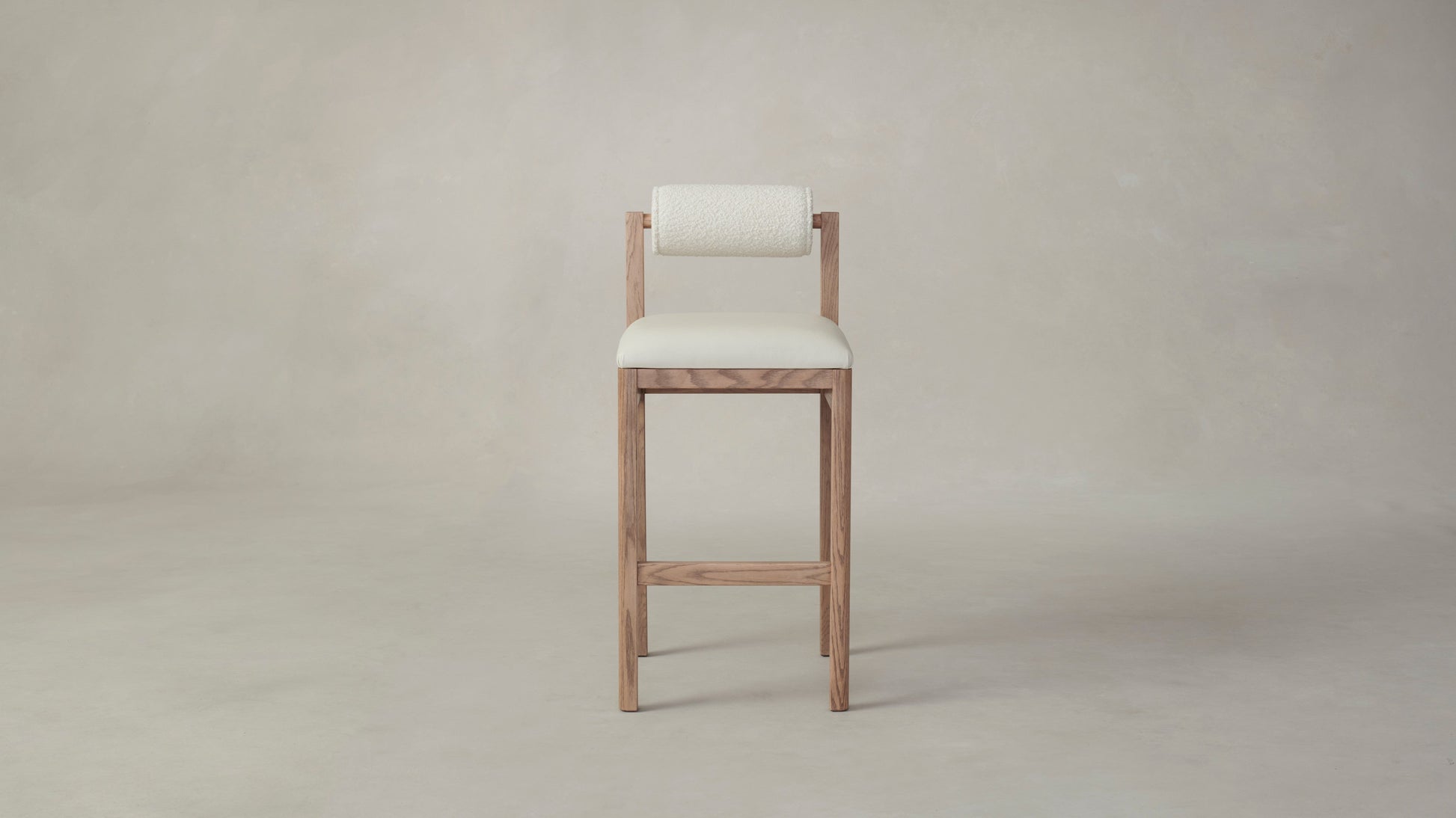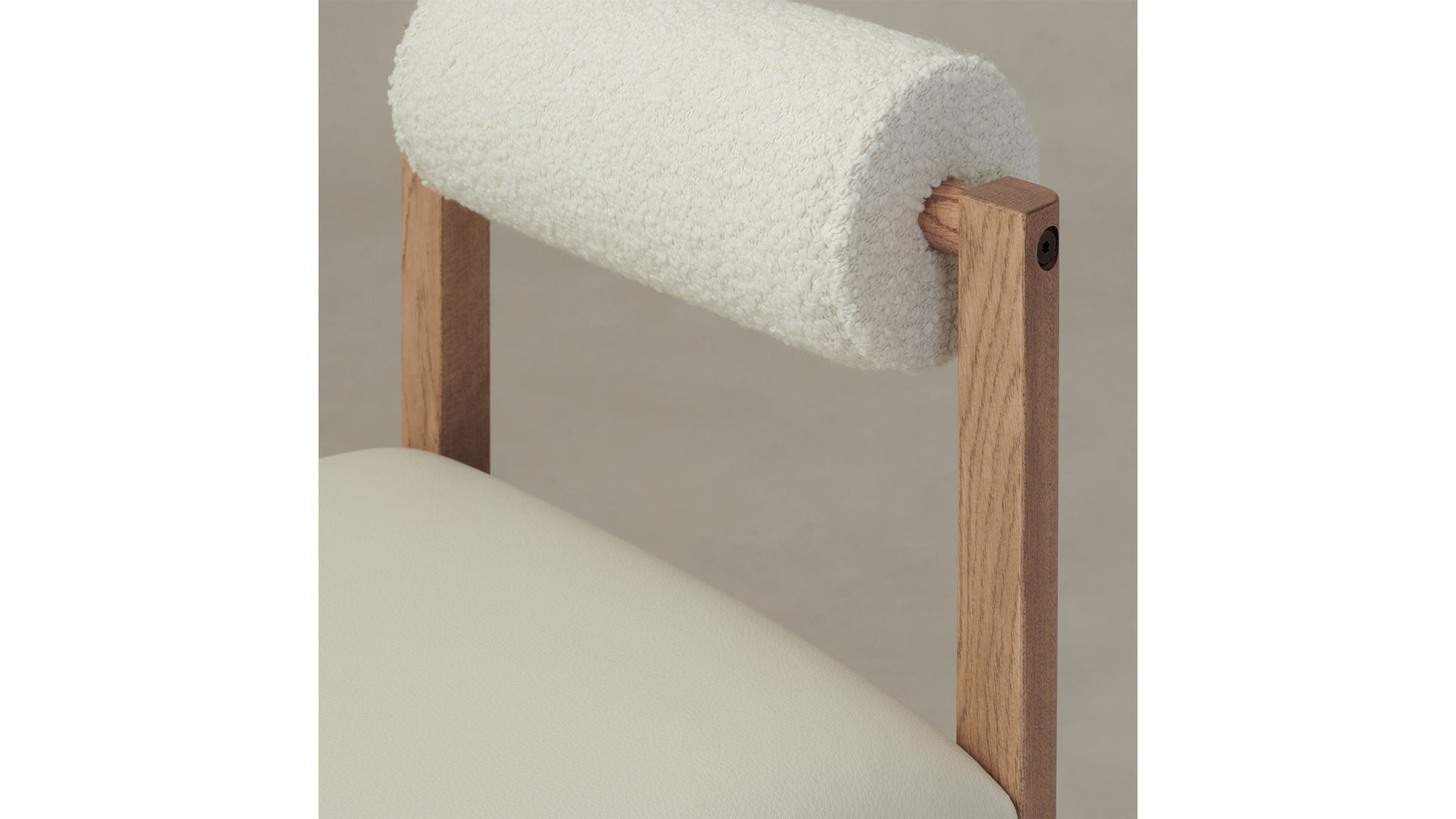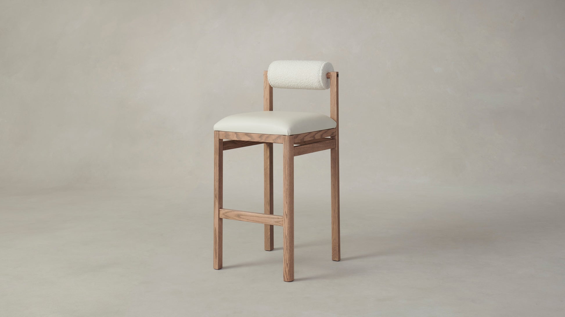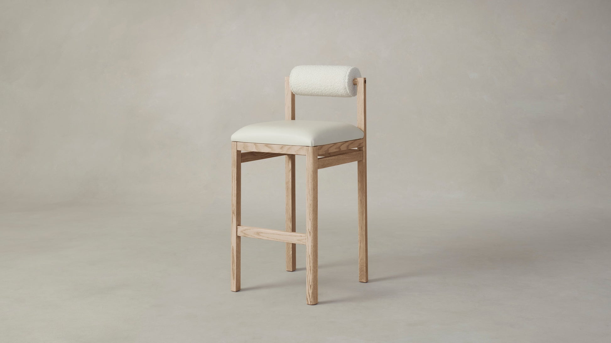 The Thayer - Pebbled Leather Swan Seat Italian Bouclé White Bolster Bar and Counter Stool