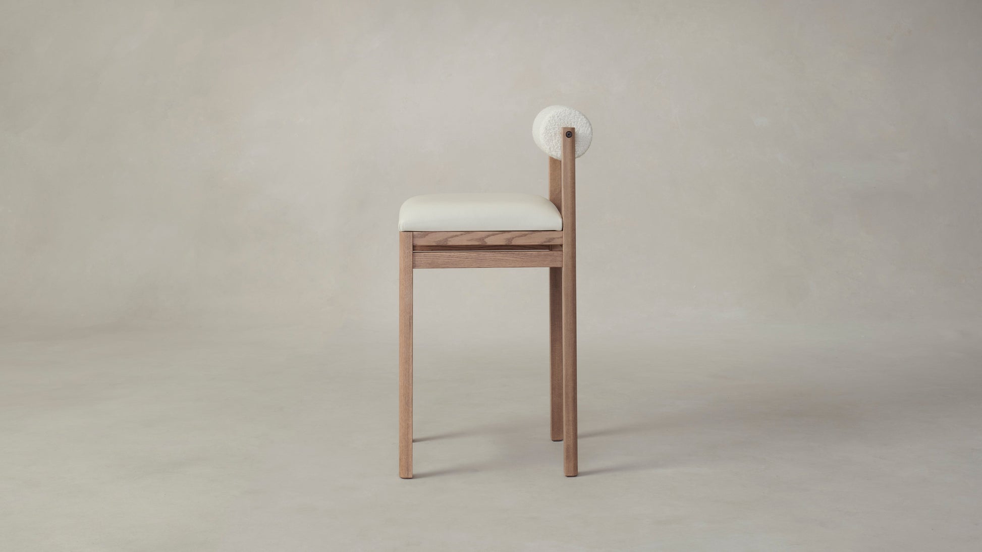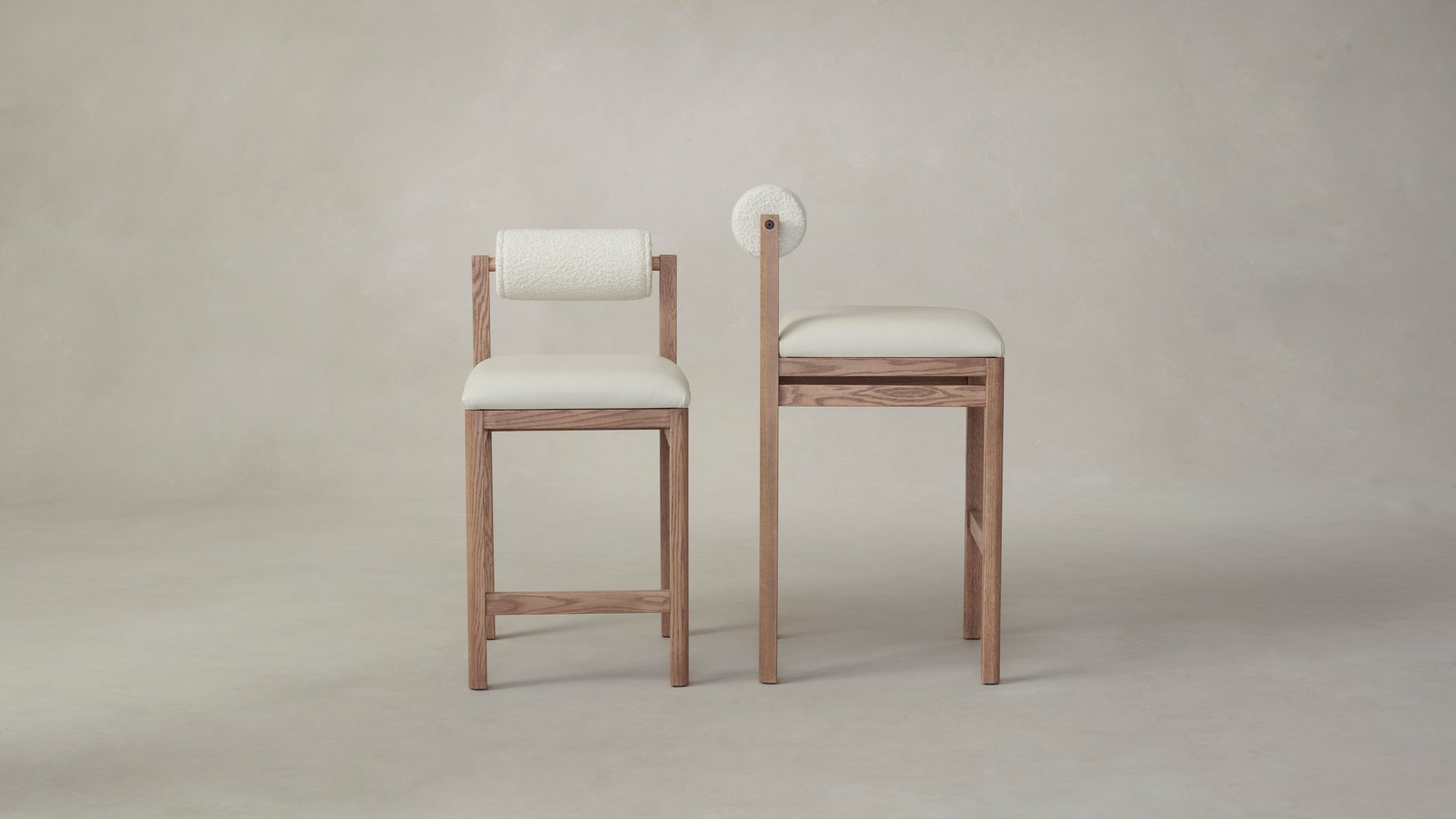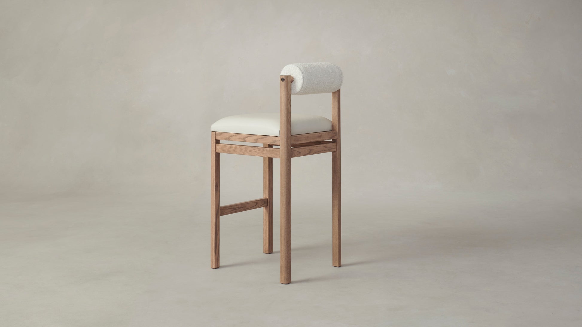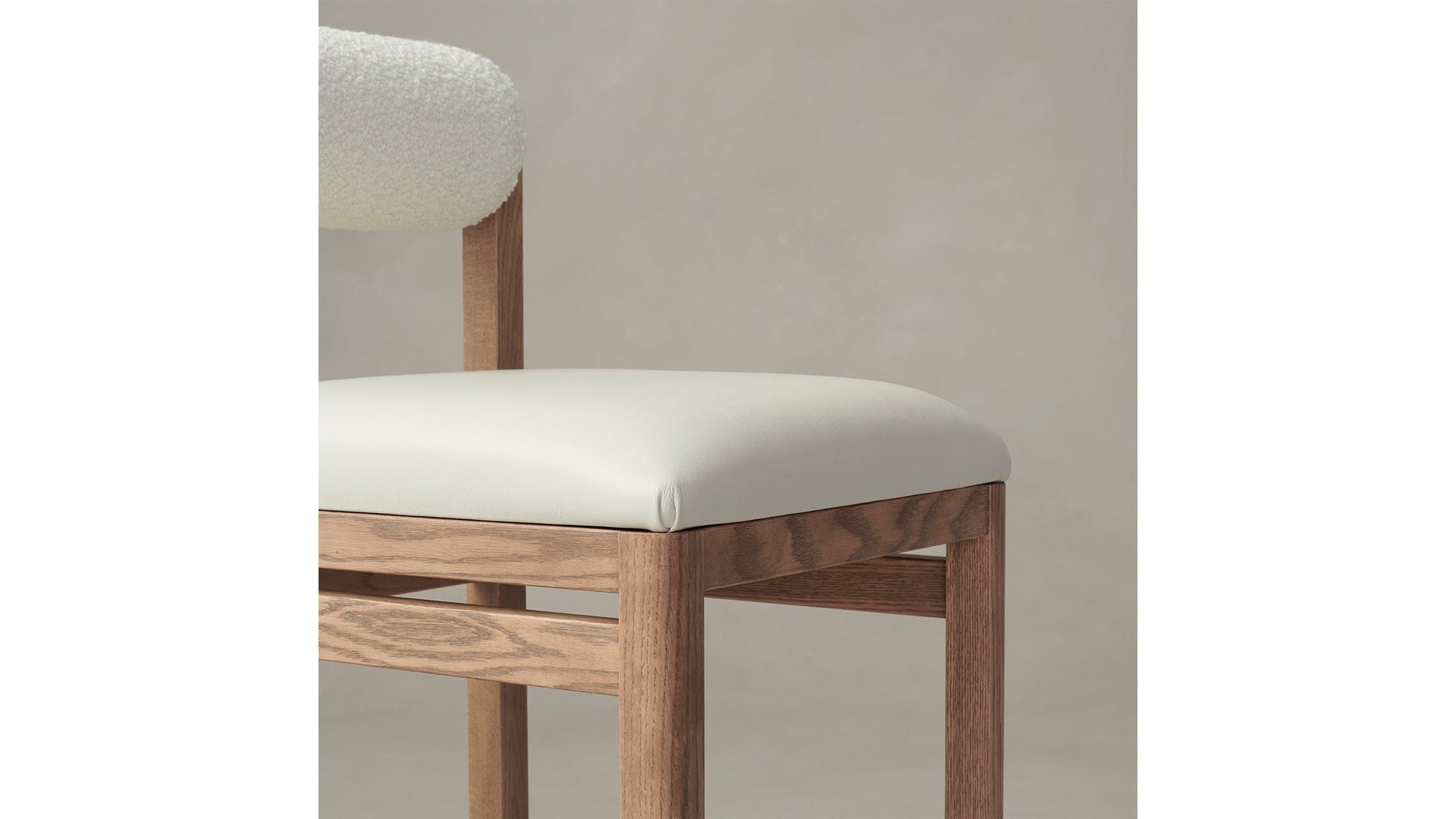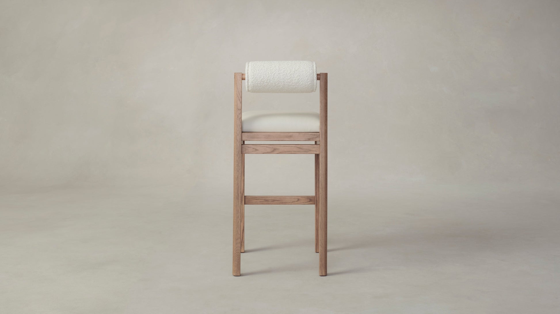 The Thayer - Pebbled Leather Swan Seat Italian Bouclé White Bolster Bar and Counter Stool