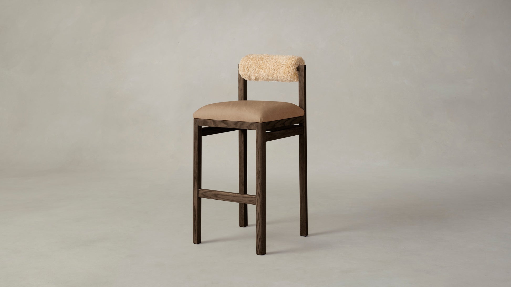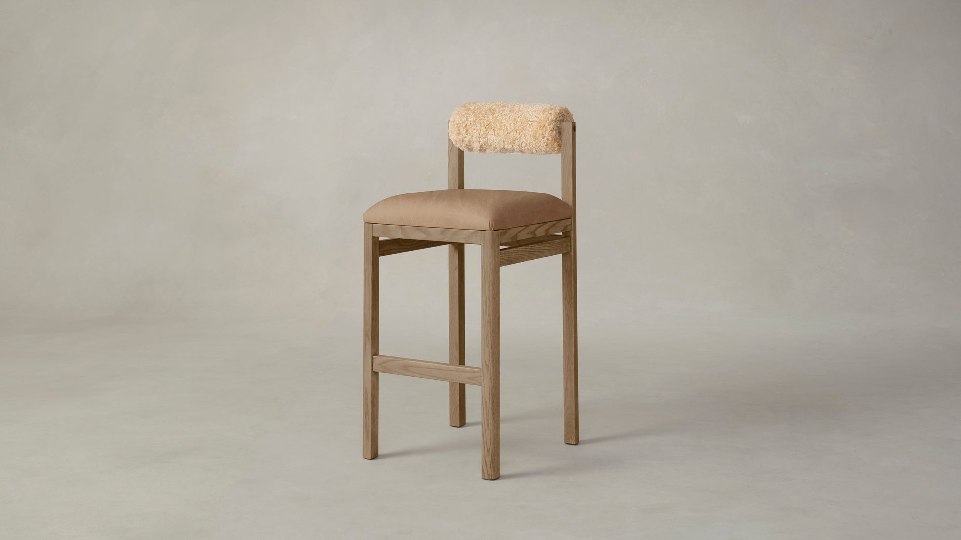 The Thayer - Tuscan Leather Camel Seat Shearling Toffee Bolster Bar and Counter Stool