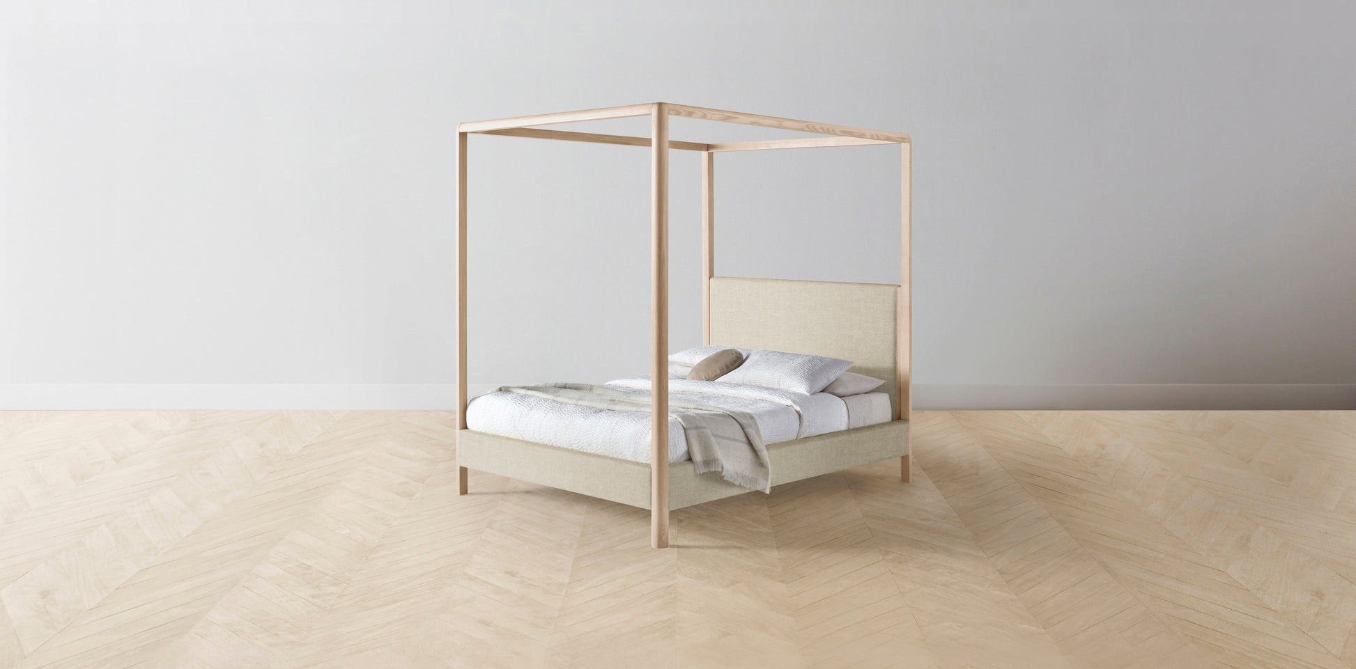 The Thompson - Belgian Linen Alder Canopy Bed - 48" Headboard - Muslin on reverse