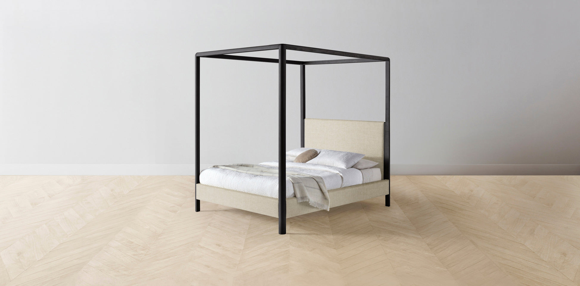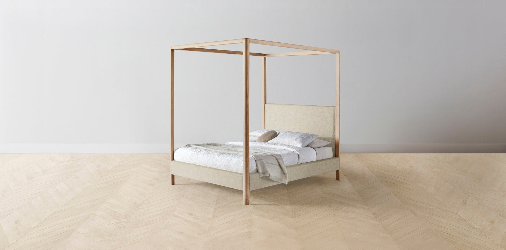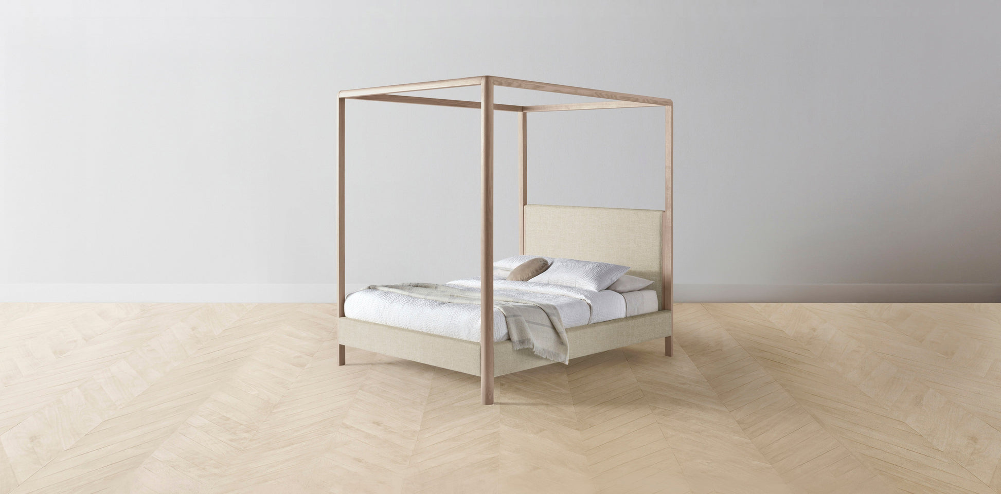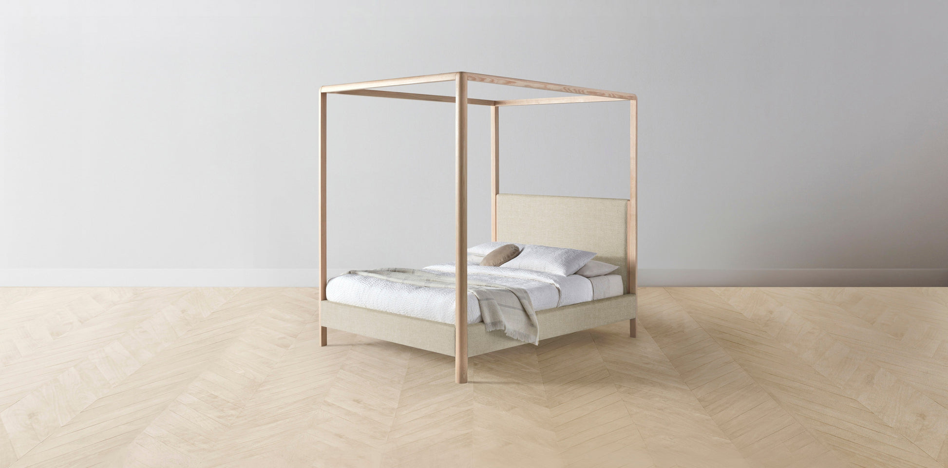 The Thompson - Belgian Linen Alder Canopy Bed - 48" Headboard - Upholstered on reverse