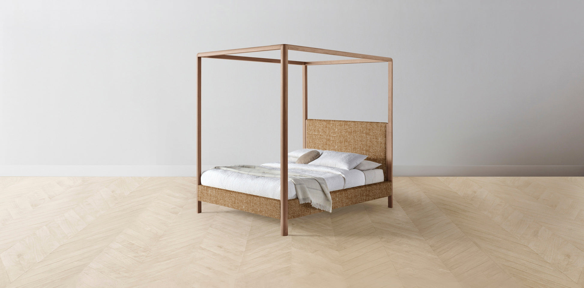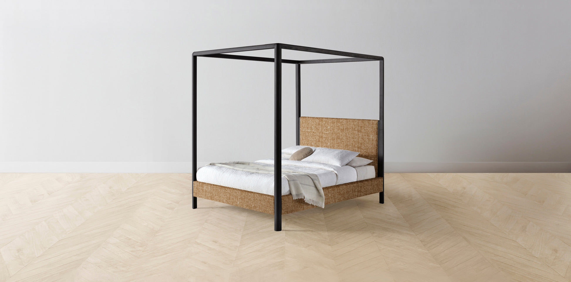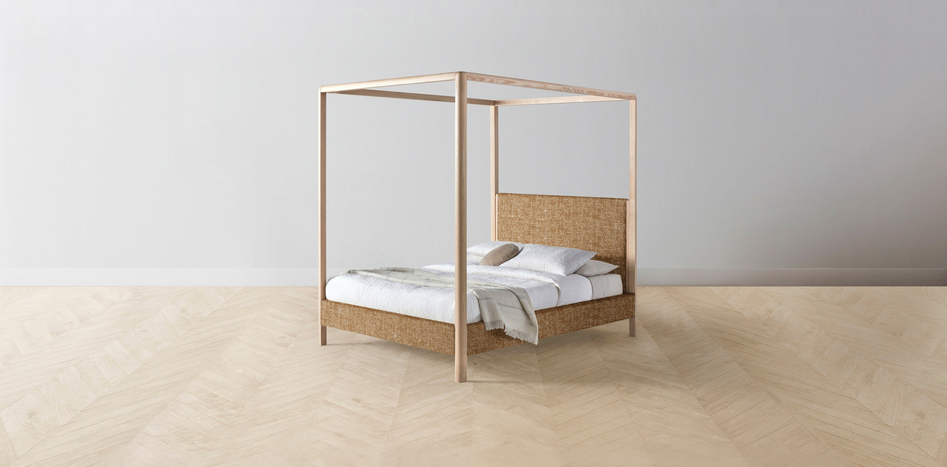 The Thompson - Belgian Linen Chai Canopy Bed - 48" Headboard - Muslin on reverse