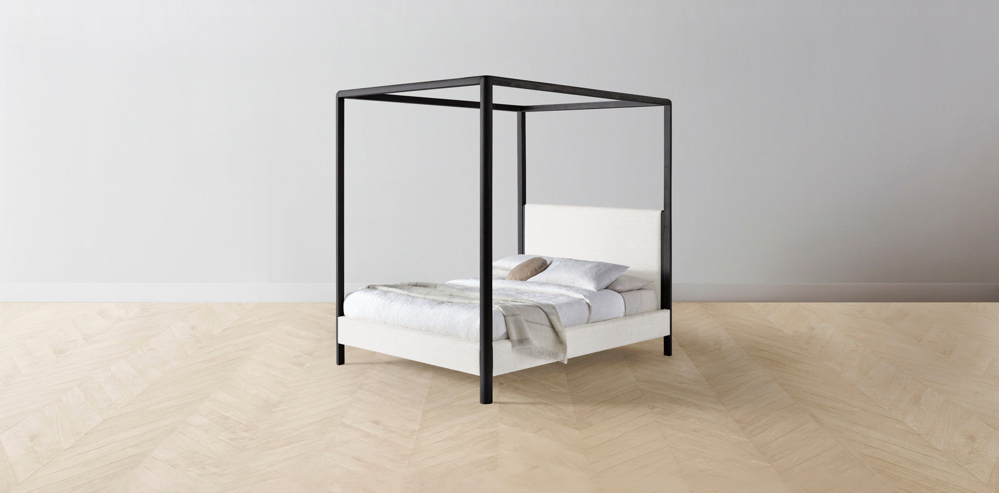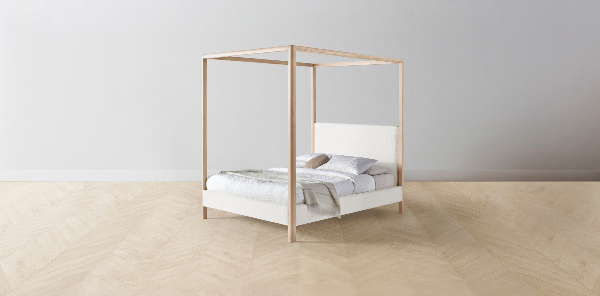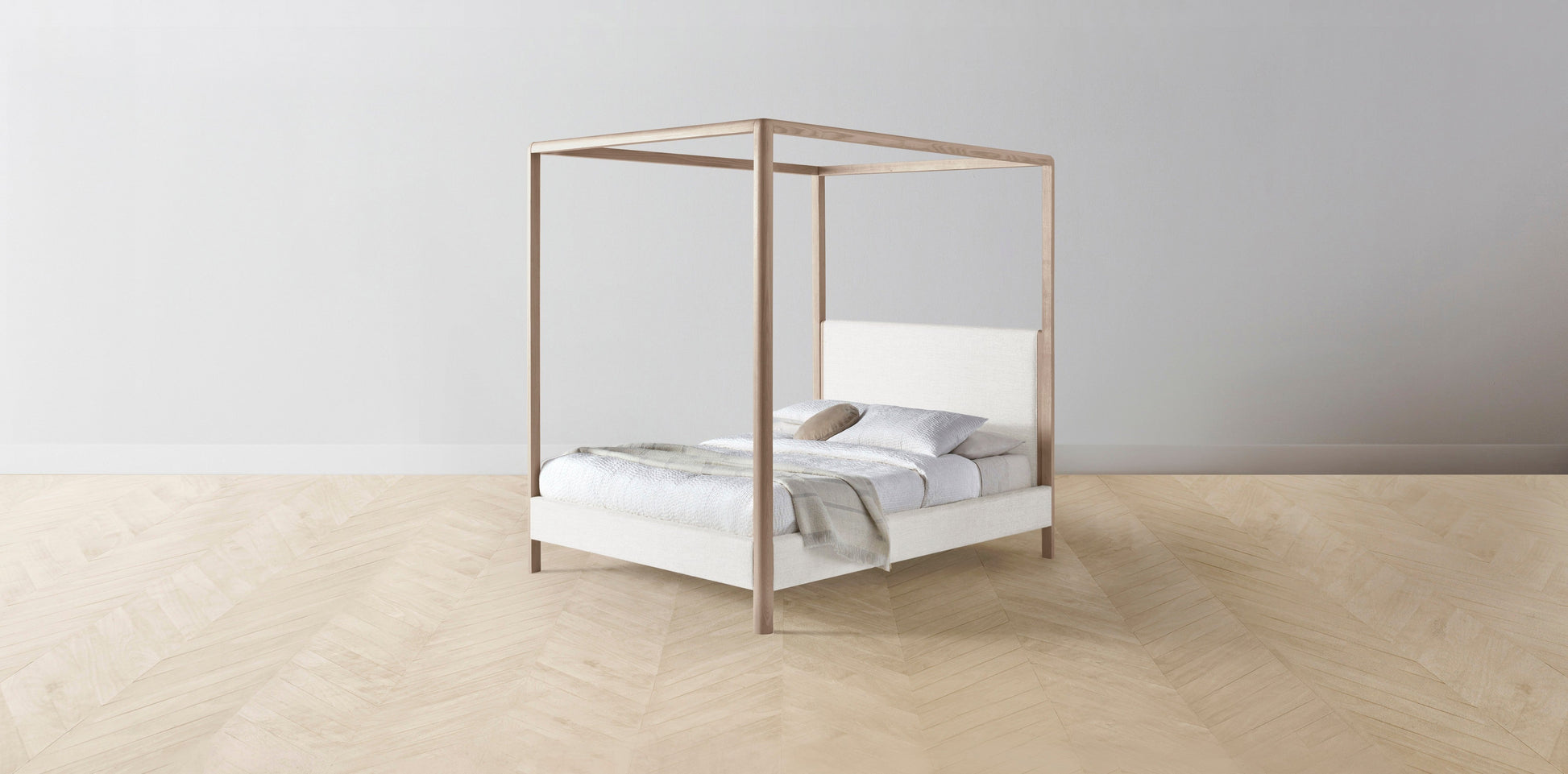 The Thompson - Belgian Linen Egret Canopy Bed - 48" Headboard - Muslin on reverse