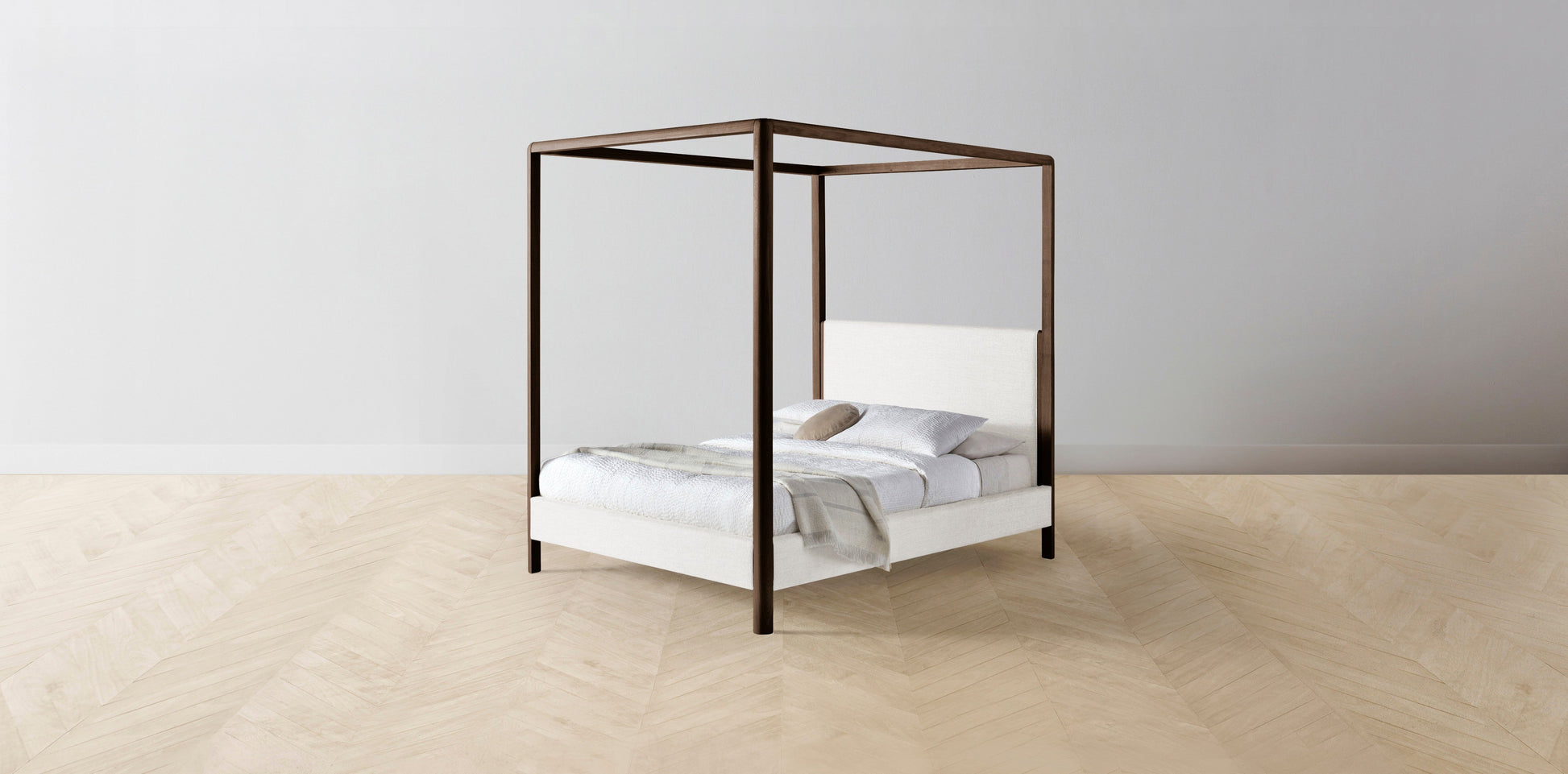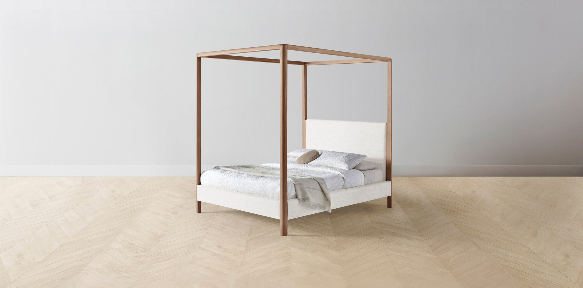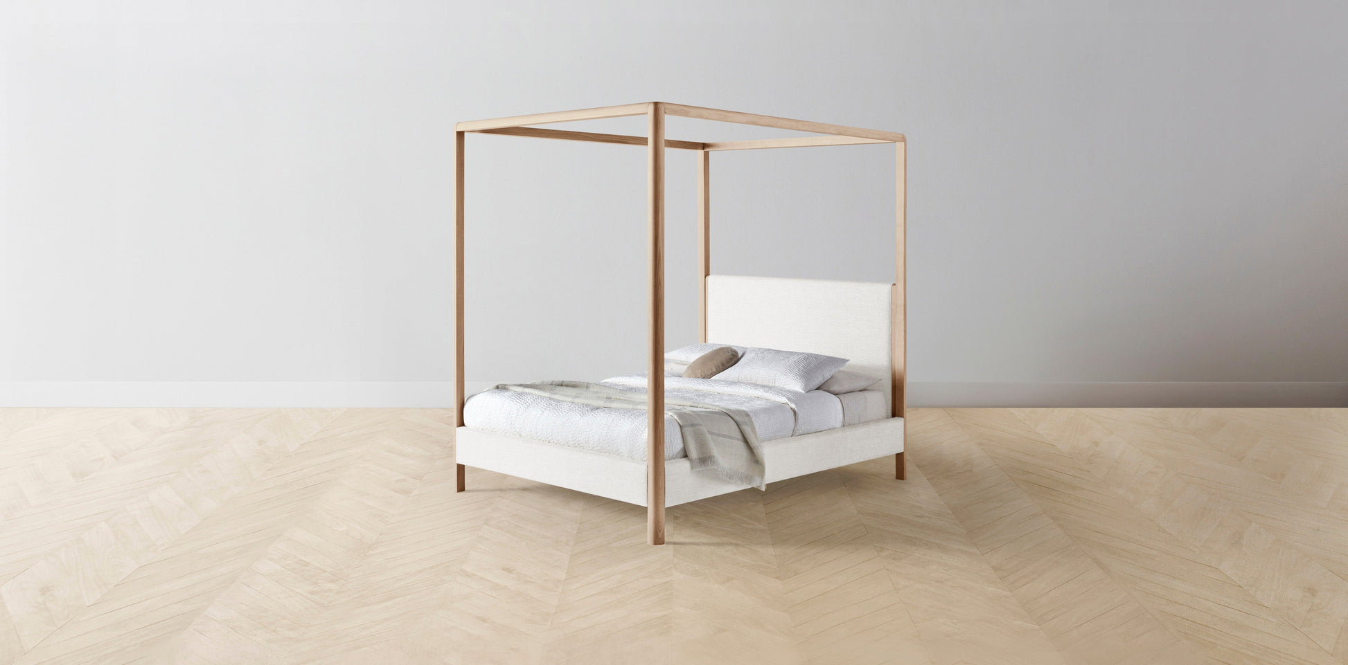 The Thompson - Belgian Linen Egret Canopy Bed - 48" Headboard - Muslin on reverse