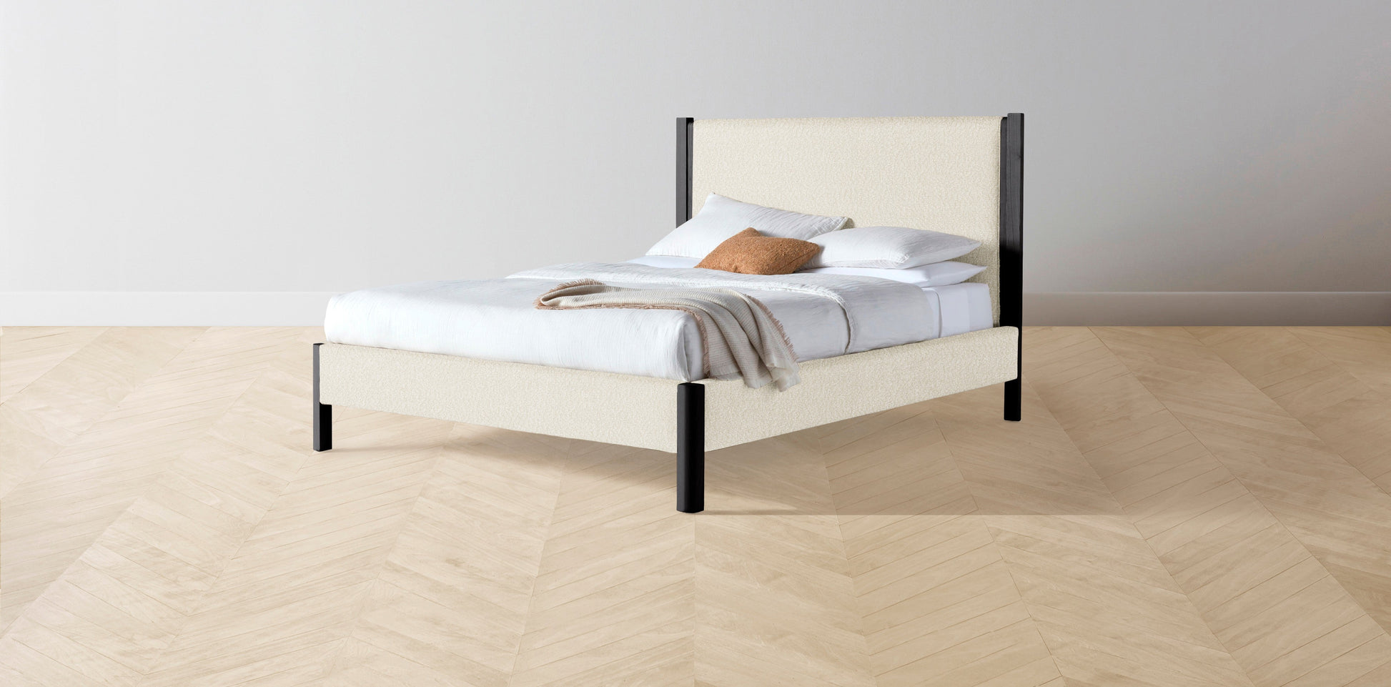 The Thompson - Italian Bouclé White Bed - 48" Headboard - Muslin on reverse