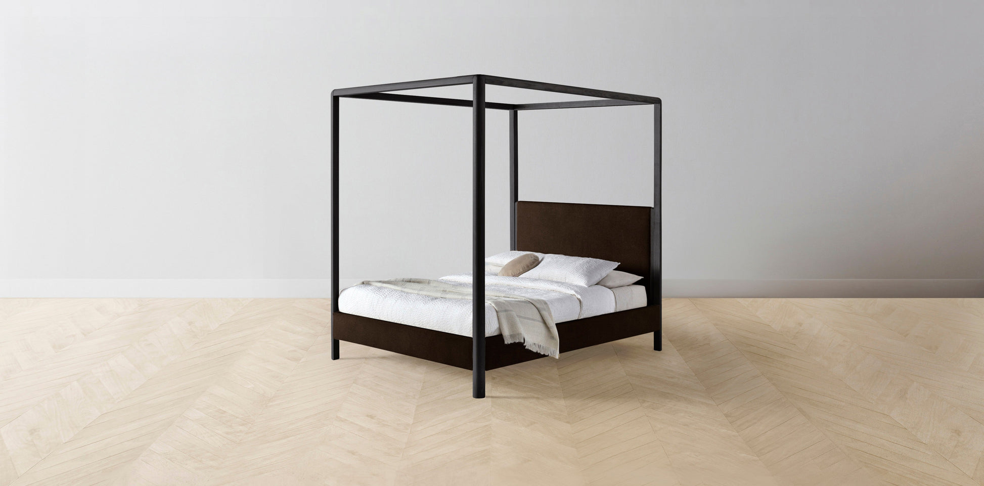 The Thompson - Mohair Chocolate Canopy Bed - 48" Headboard - Muslin on reverse