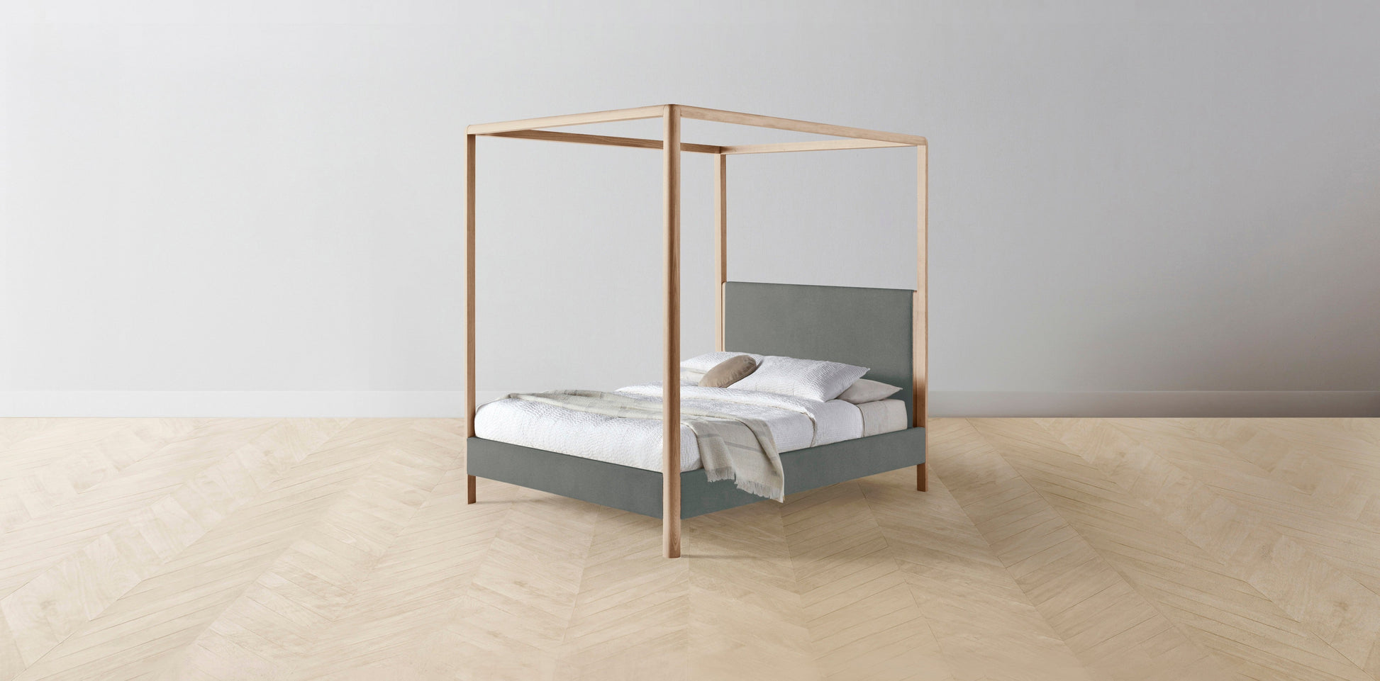 The Thompson - Mohair Fog Canopy Bed - 48" Headboard - Muslin on reverse