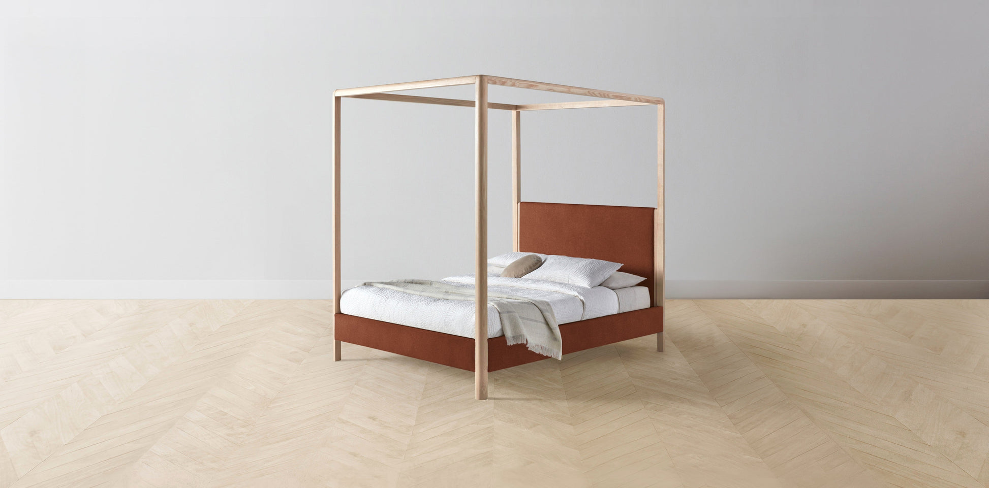The Thompson - Mohair Spice Canopy Bed - 48" Headboard - Muslin on reverse