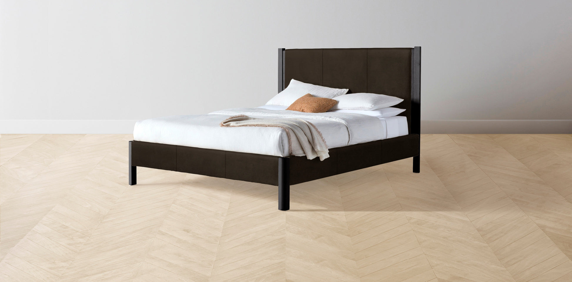 The Thompson - Nubuck Leather Espresso Bed - 48" Headboard - Upholstered on reverse