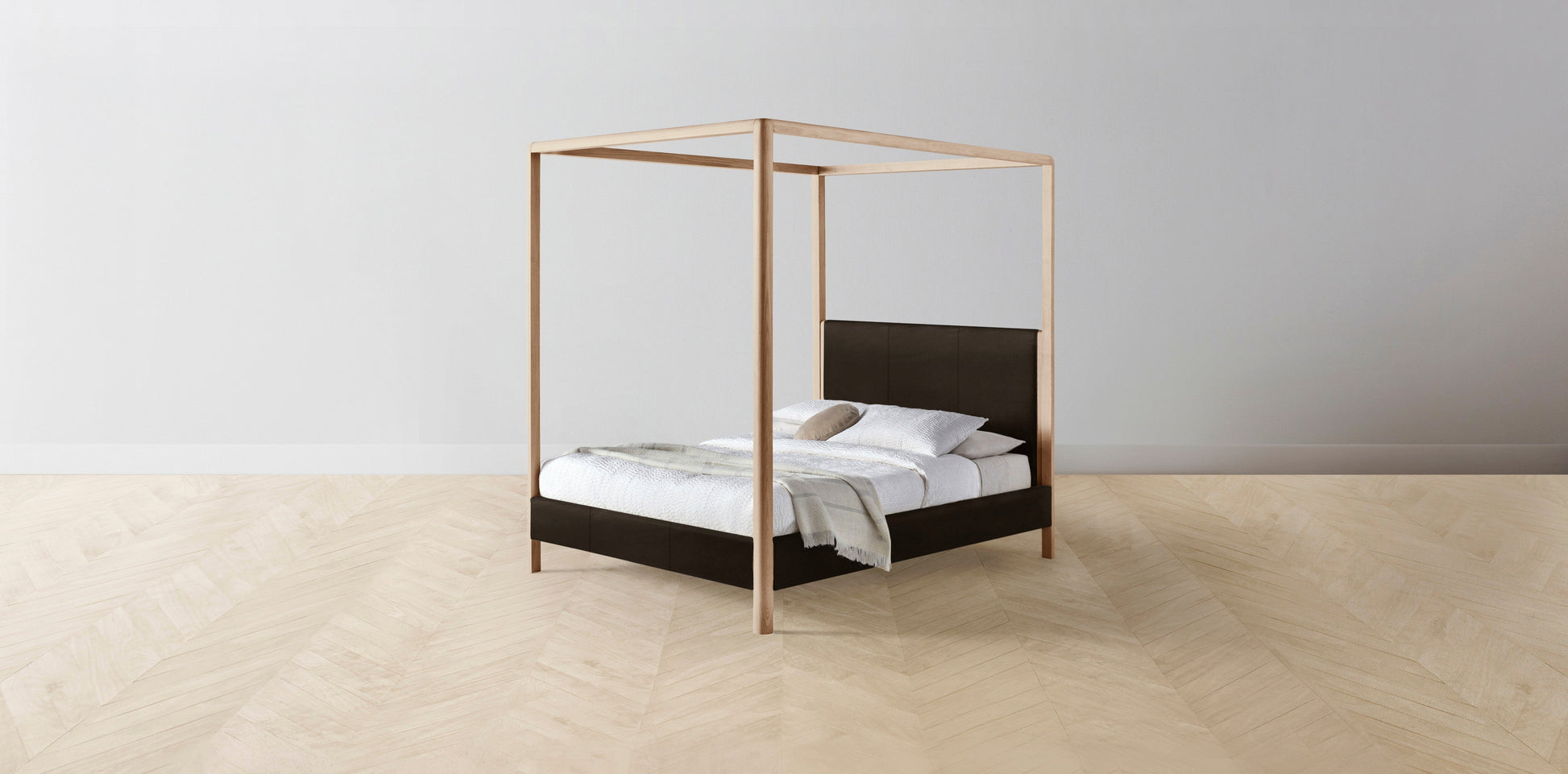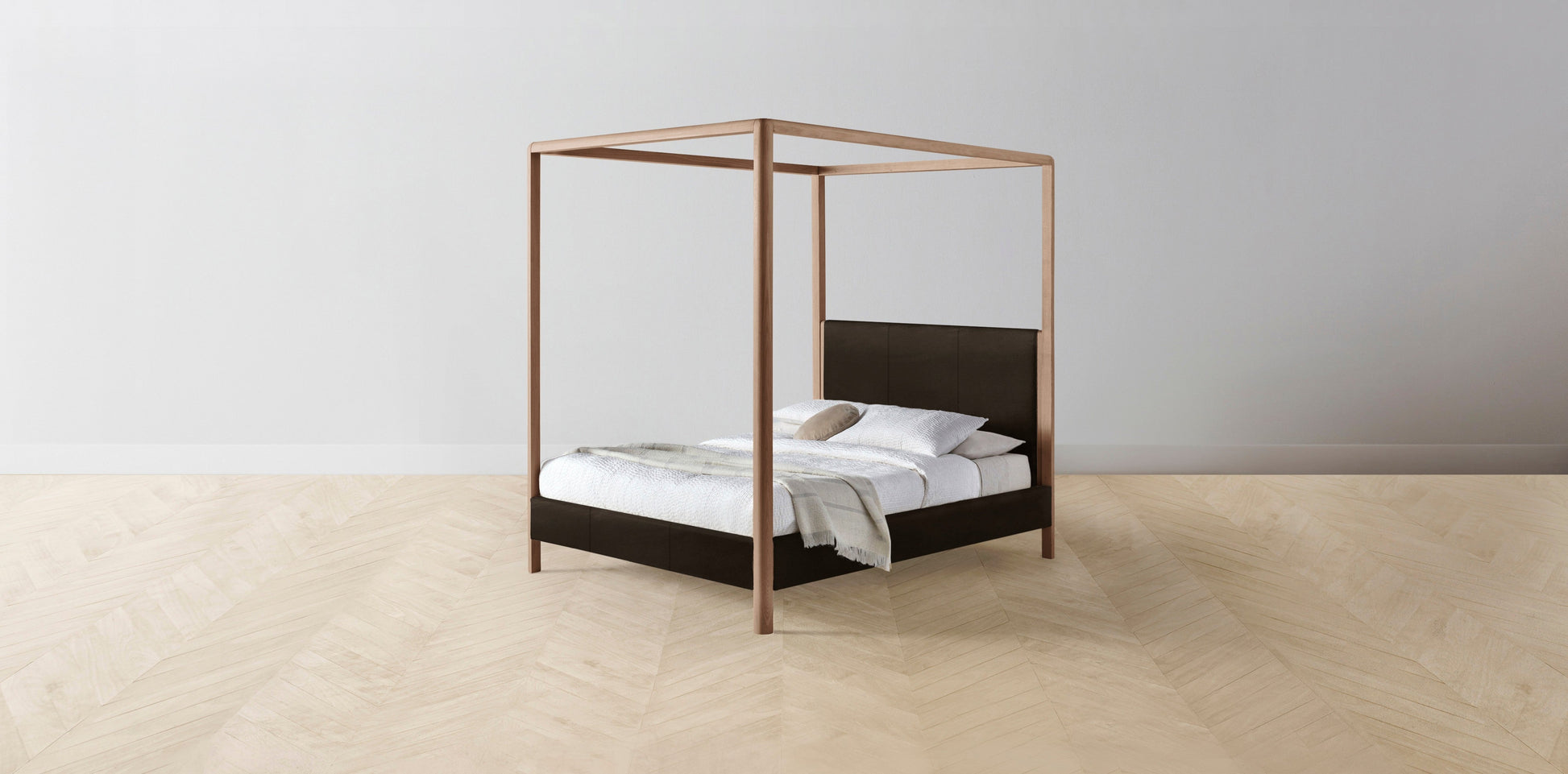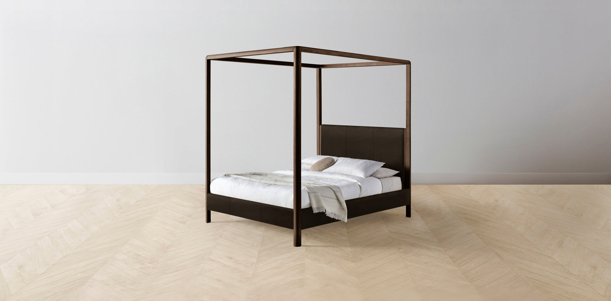The Thompson - Nubuck Leather Espresso Canopy Bed - 48" Headboard - Upholstered on reverse