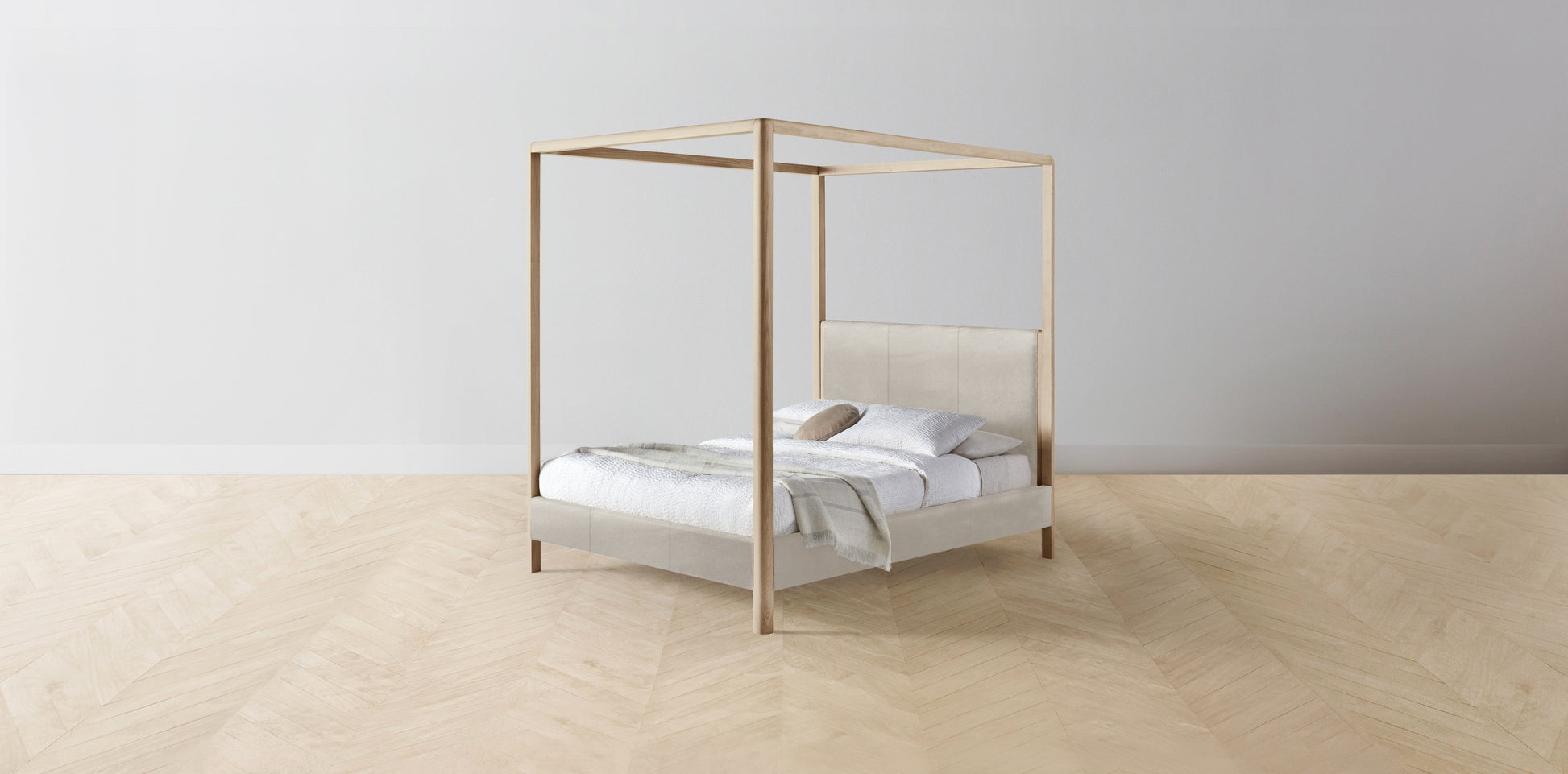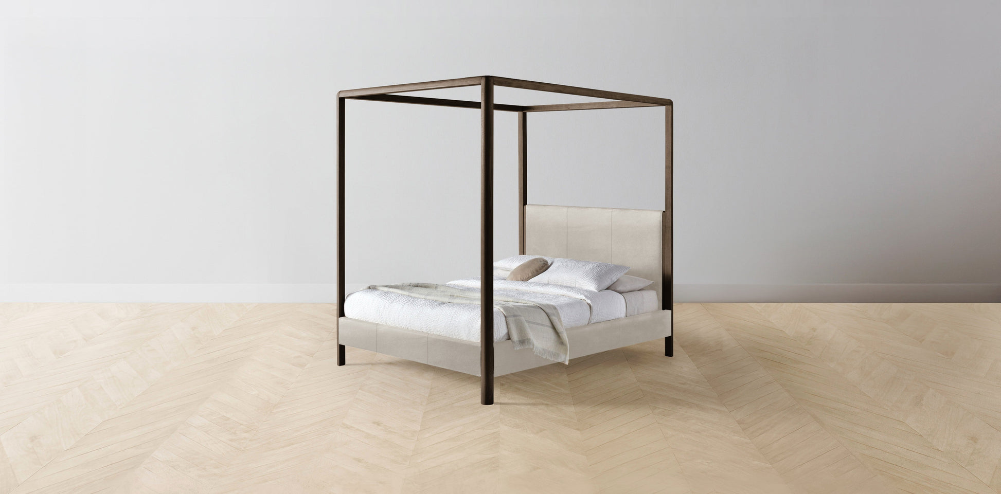 The Thompson - Nubuck Leather Sail Canopy Bed - 48" Headboard - Upholstered on reverse