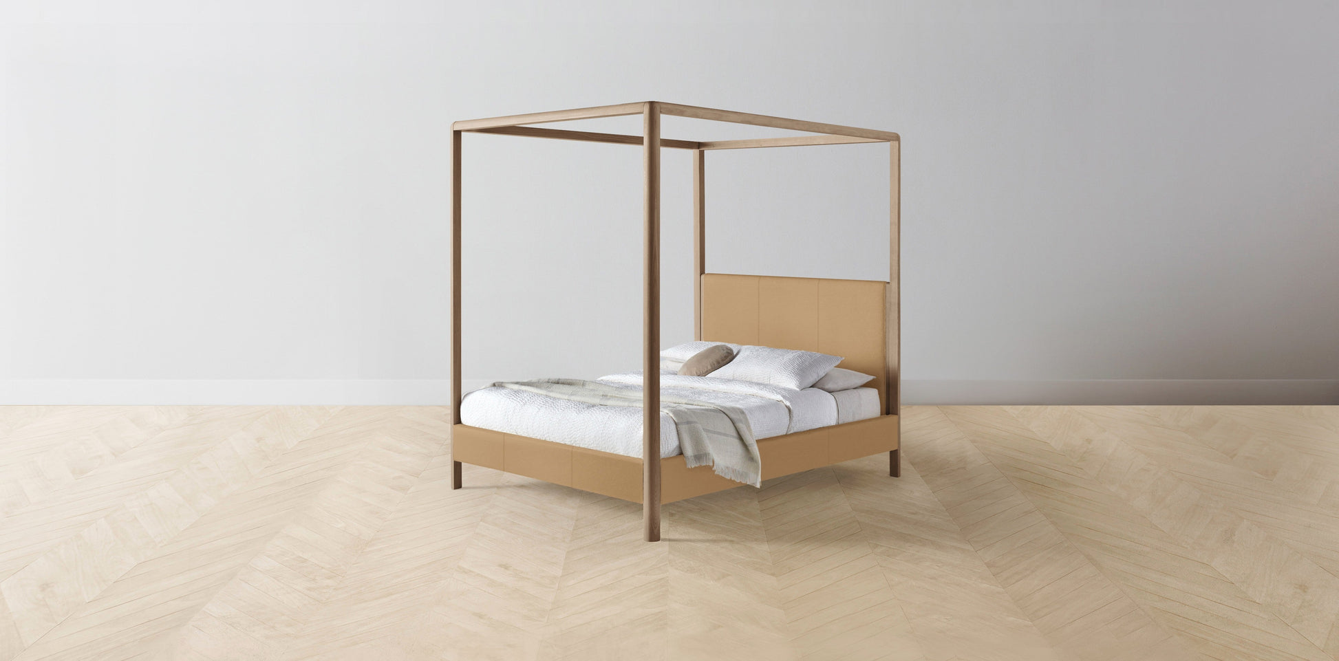 The Thompson - Pebbled Leather Latte Canopy Bed - 48" Headboard - Upholstered on reverse