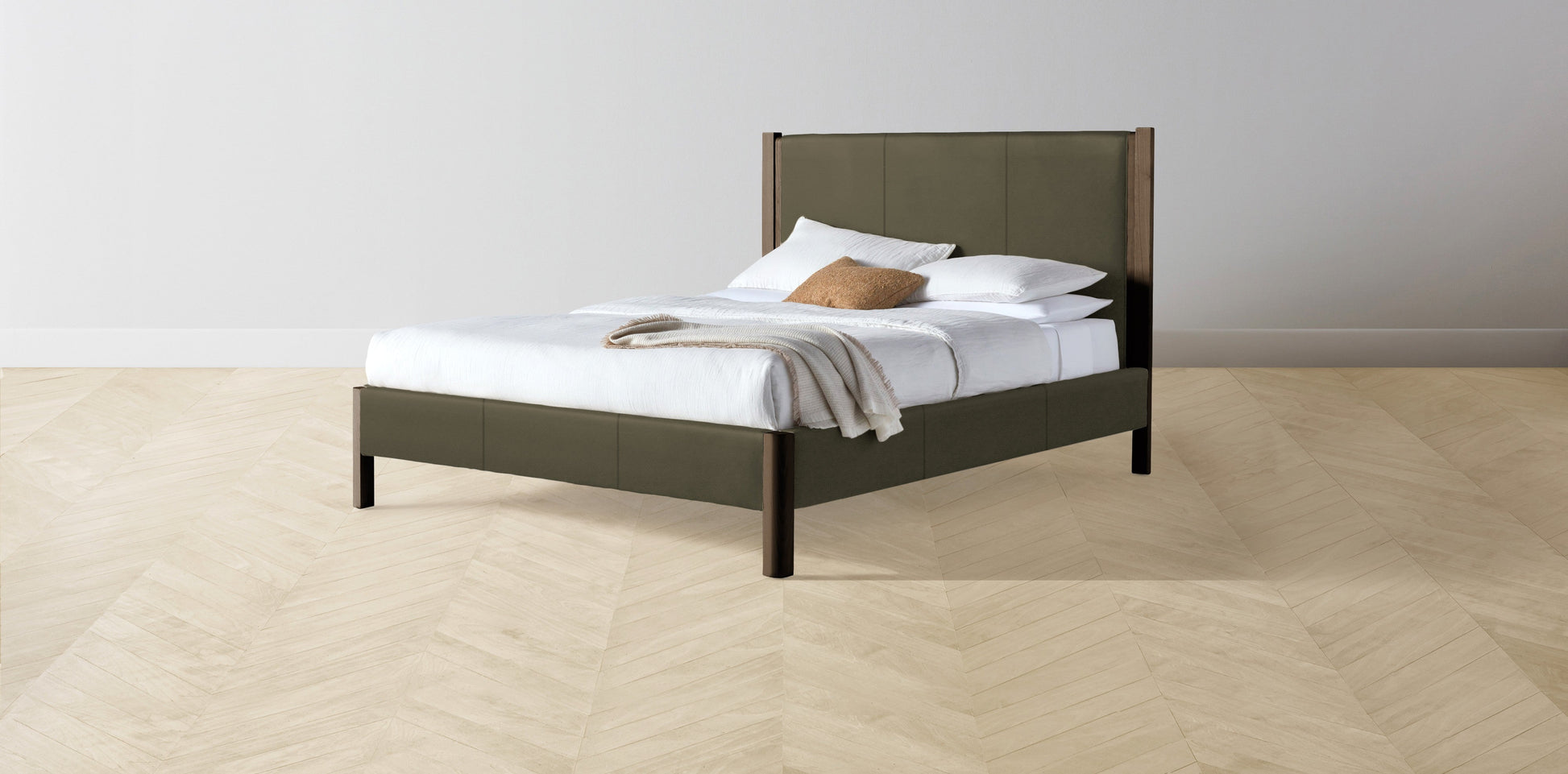 The Thompson - Pebbled Leather Truffle Bed - 48" Headboard - Upholstered on reverse