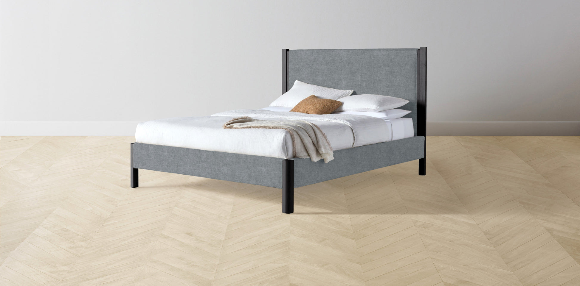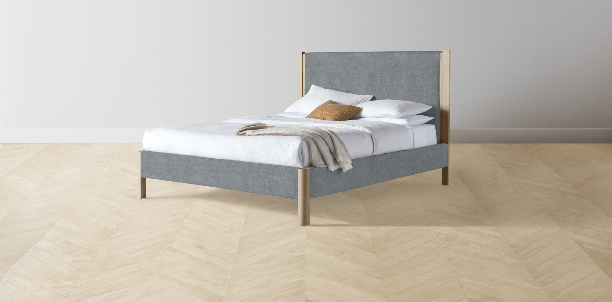 The Thompson - Performance Melange Weave Aegean Bed - 48" Headboard - Muslin on reverse