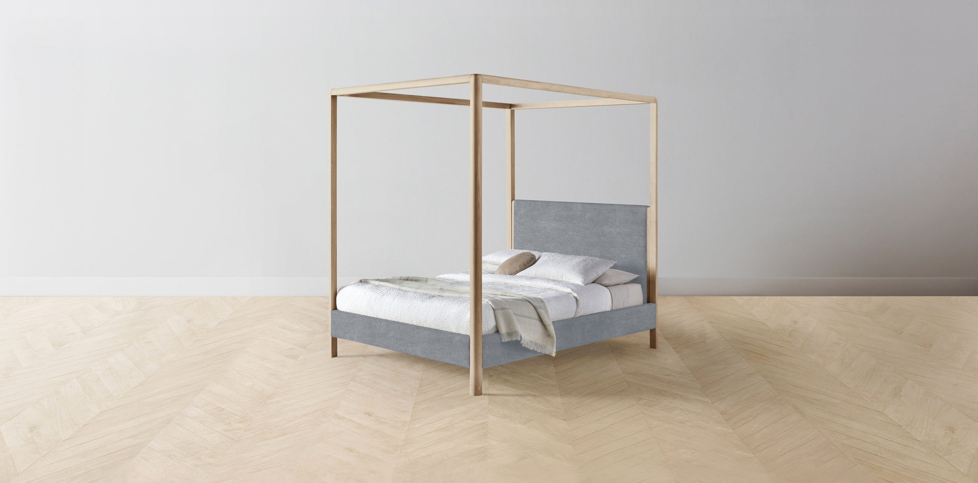 The Thompson - Performance Melange Weave Aegean Canopy Bed - 48" Headboard - Upholstered on reverse