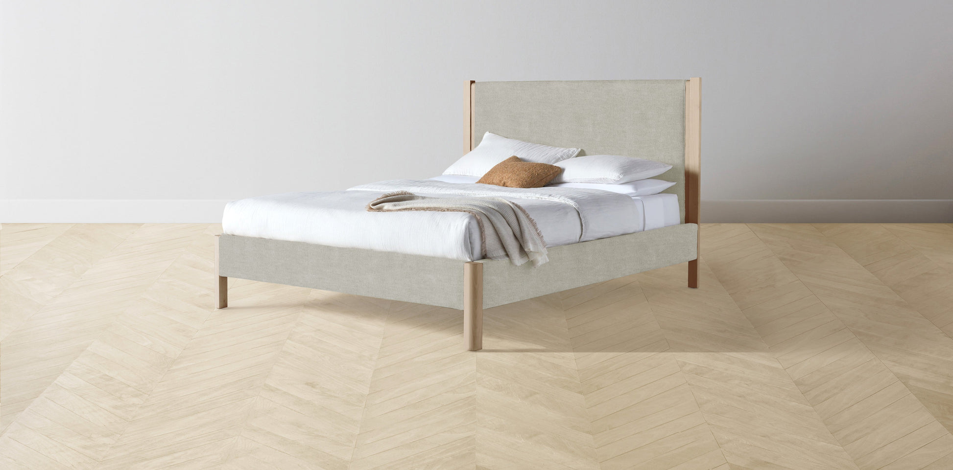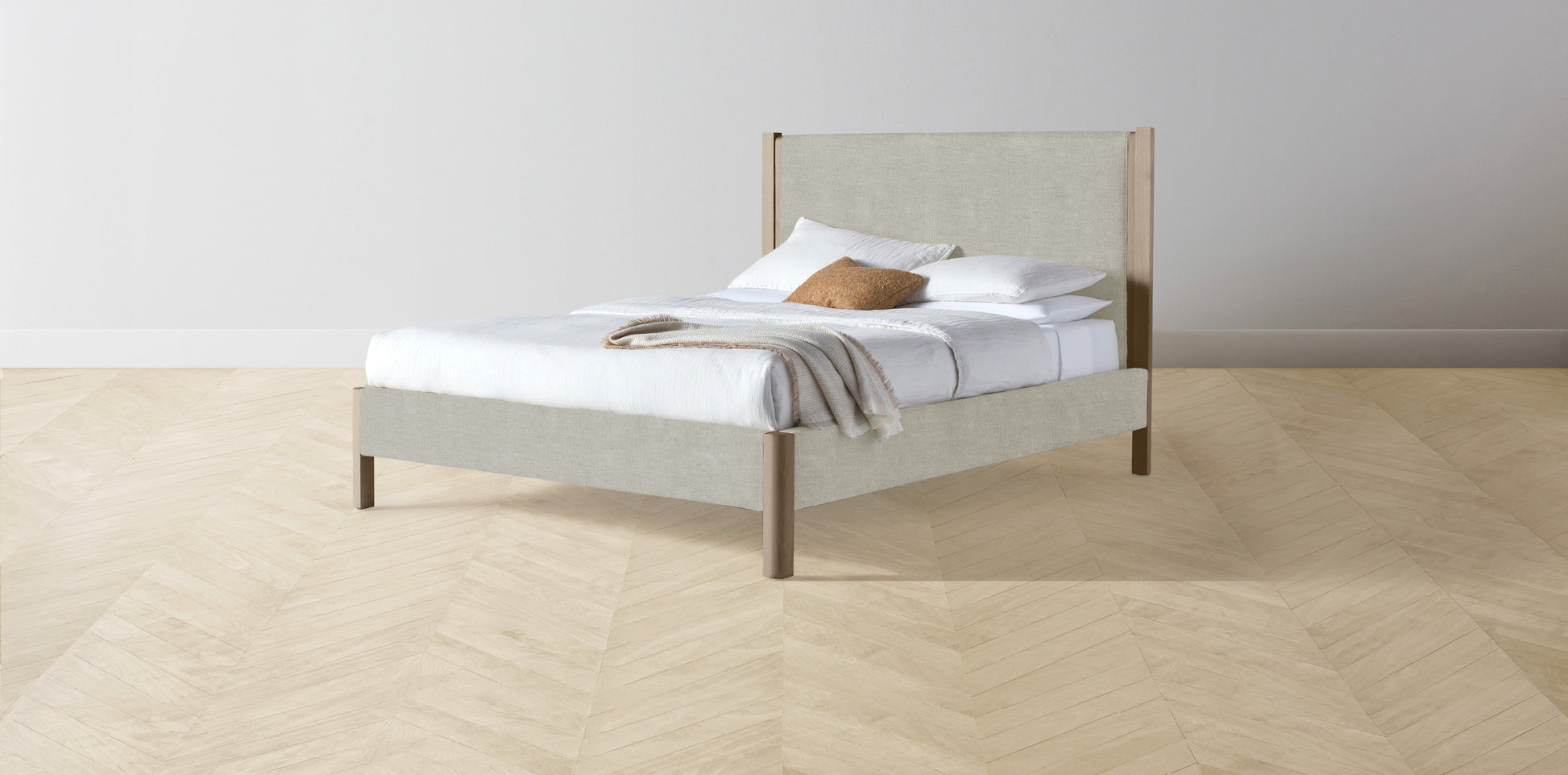 The Thompson - Performance Melange Weave Flint Bed - 48" Headboard - Upholstered on reverse