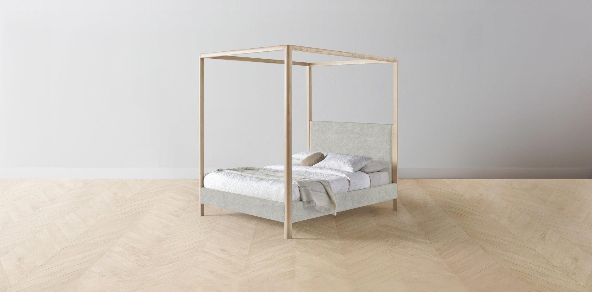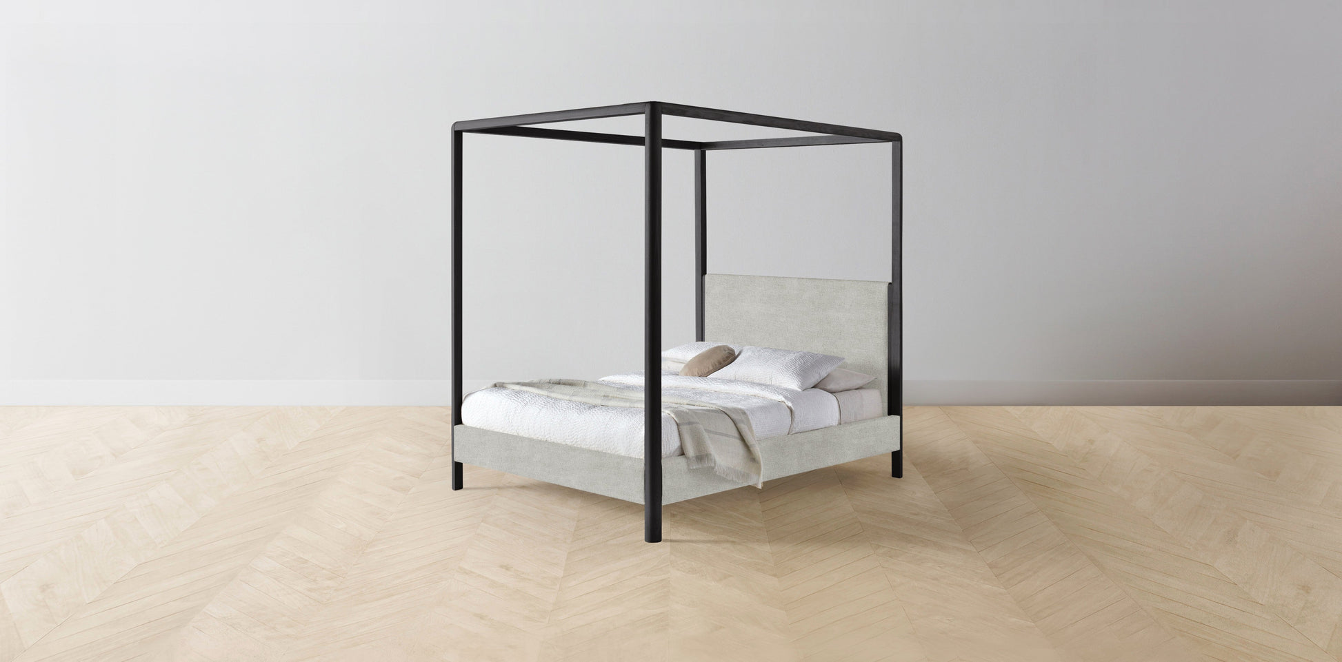 The Thompson - Performance Melange Weave Flint Canopy Bed - 48" Headboard - Upholstered on reverse
