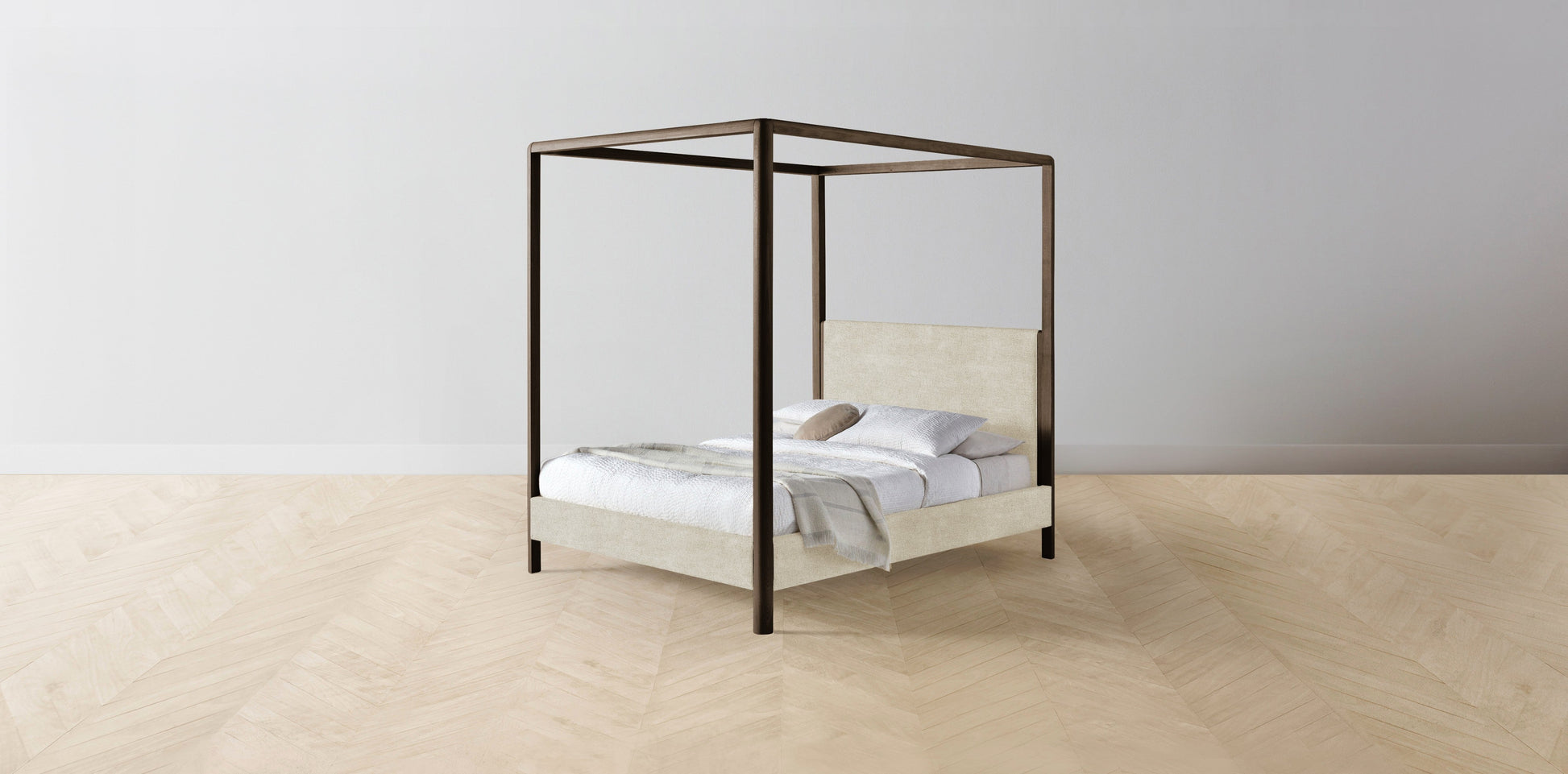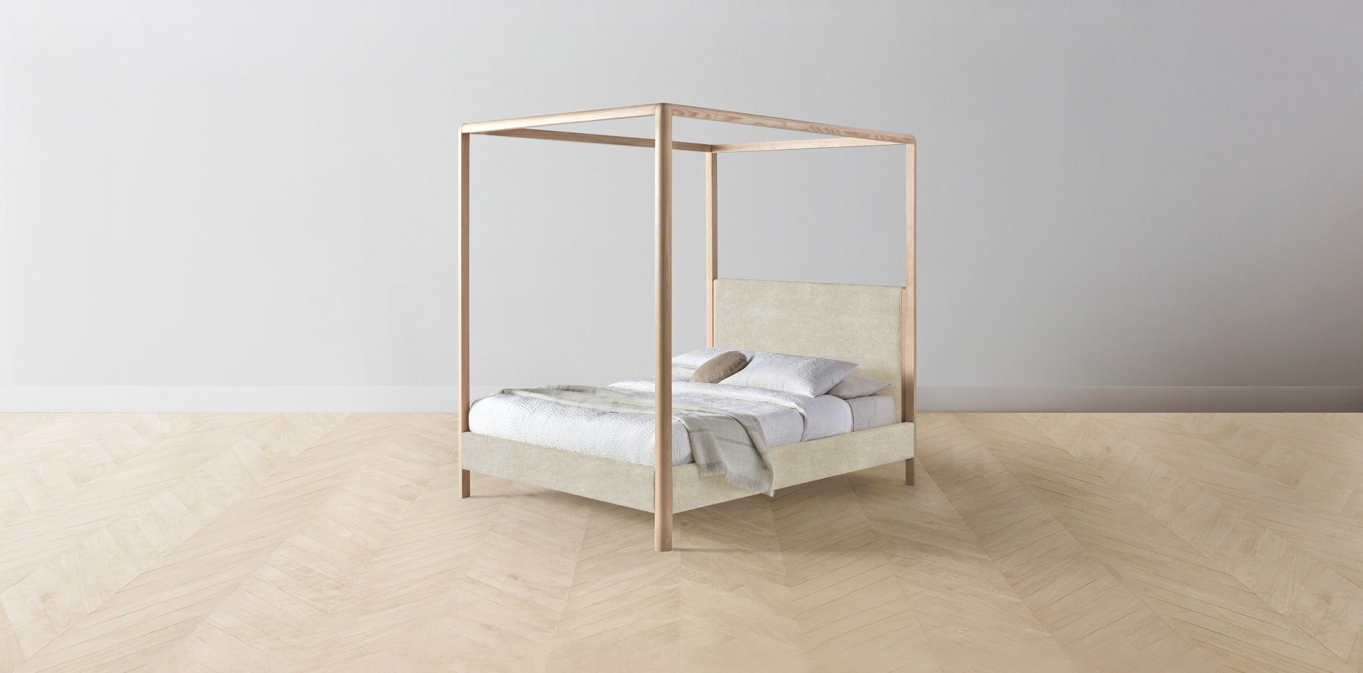 The Thompson - Performance Melange Weave Shell Canopy Bed - 48" Headboard - Muslin on reverse