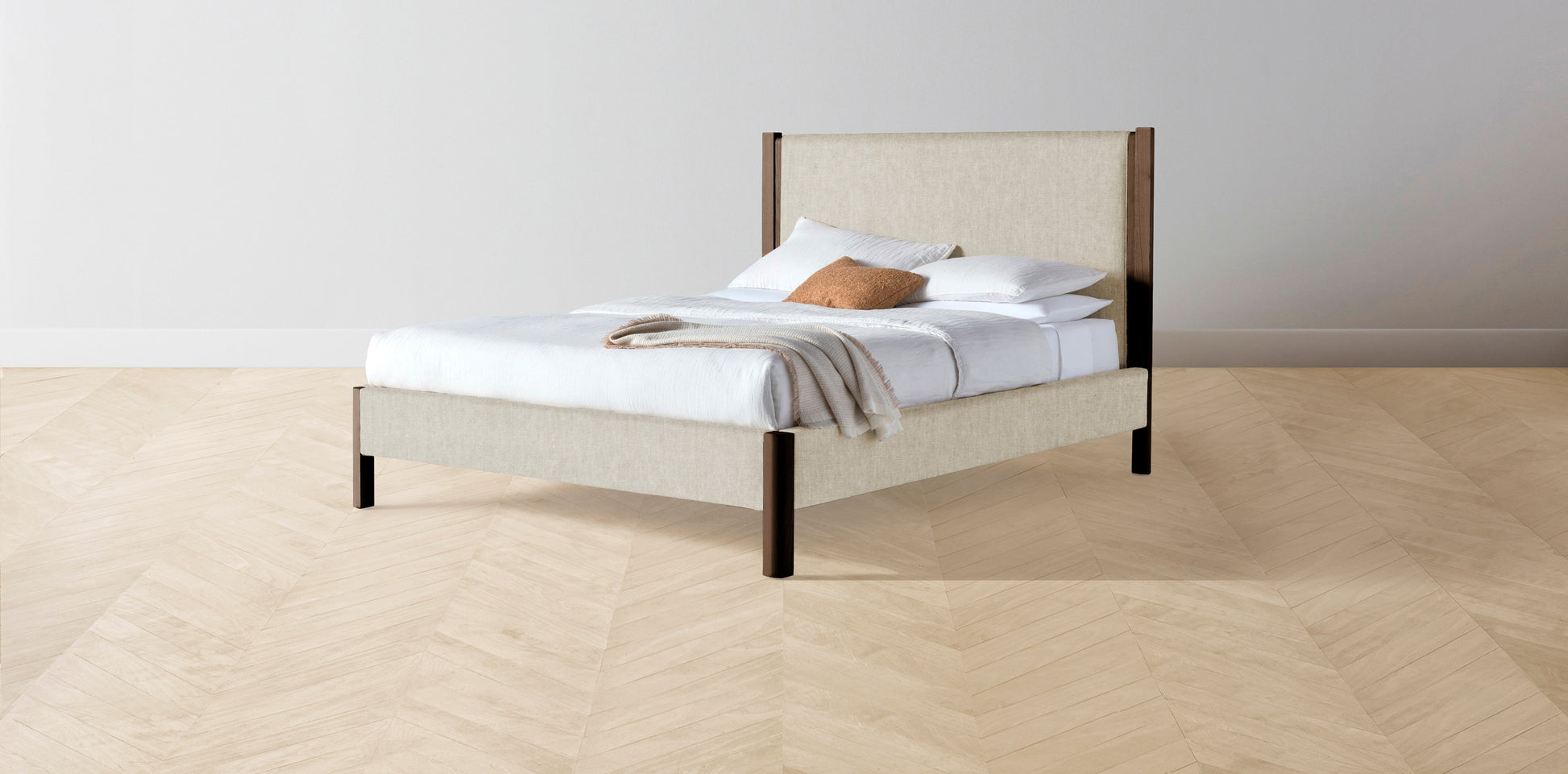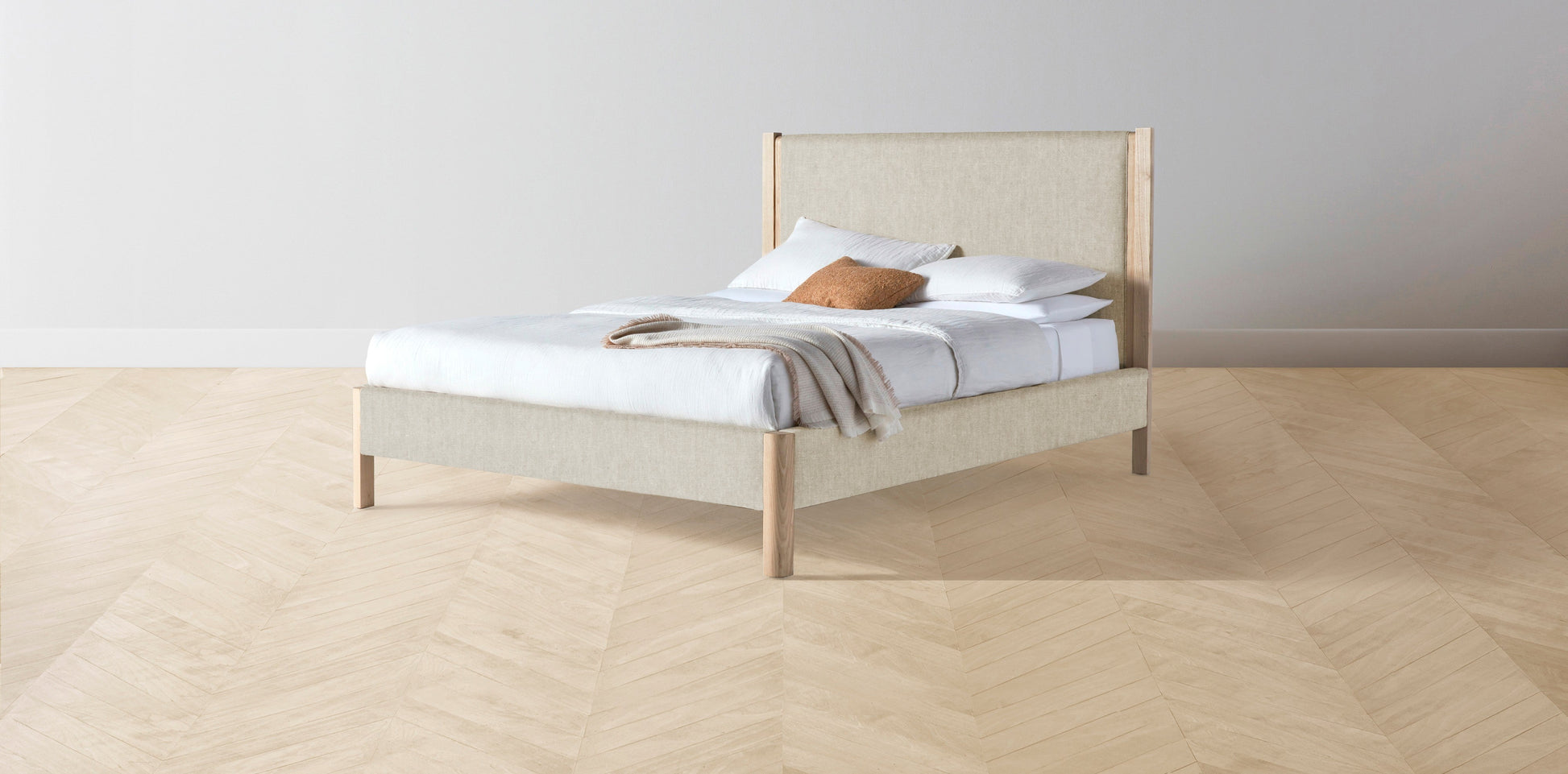 The Thompson - Performance Stonewashed Linen Clamshell Bed - 48" Headboard - Upholstered on reverse