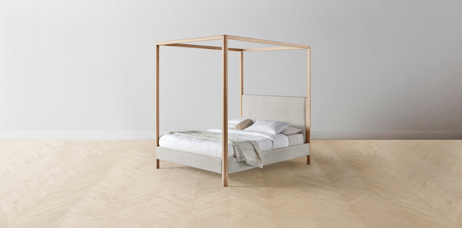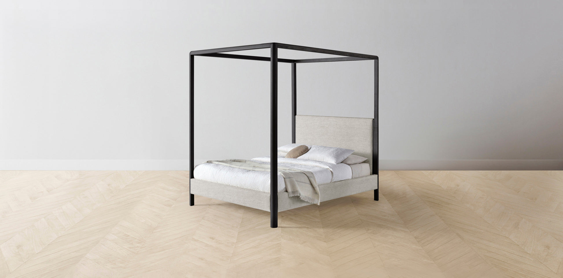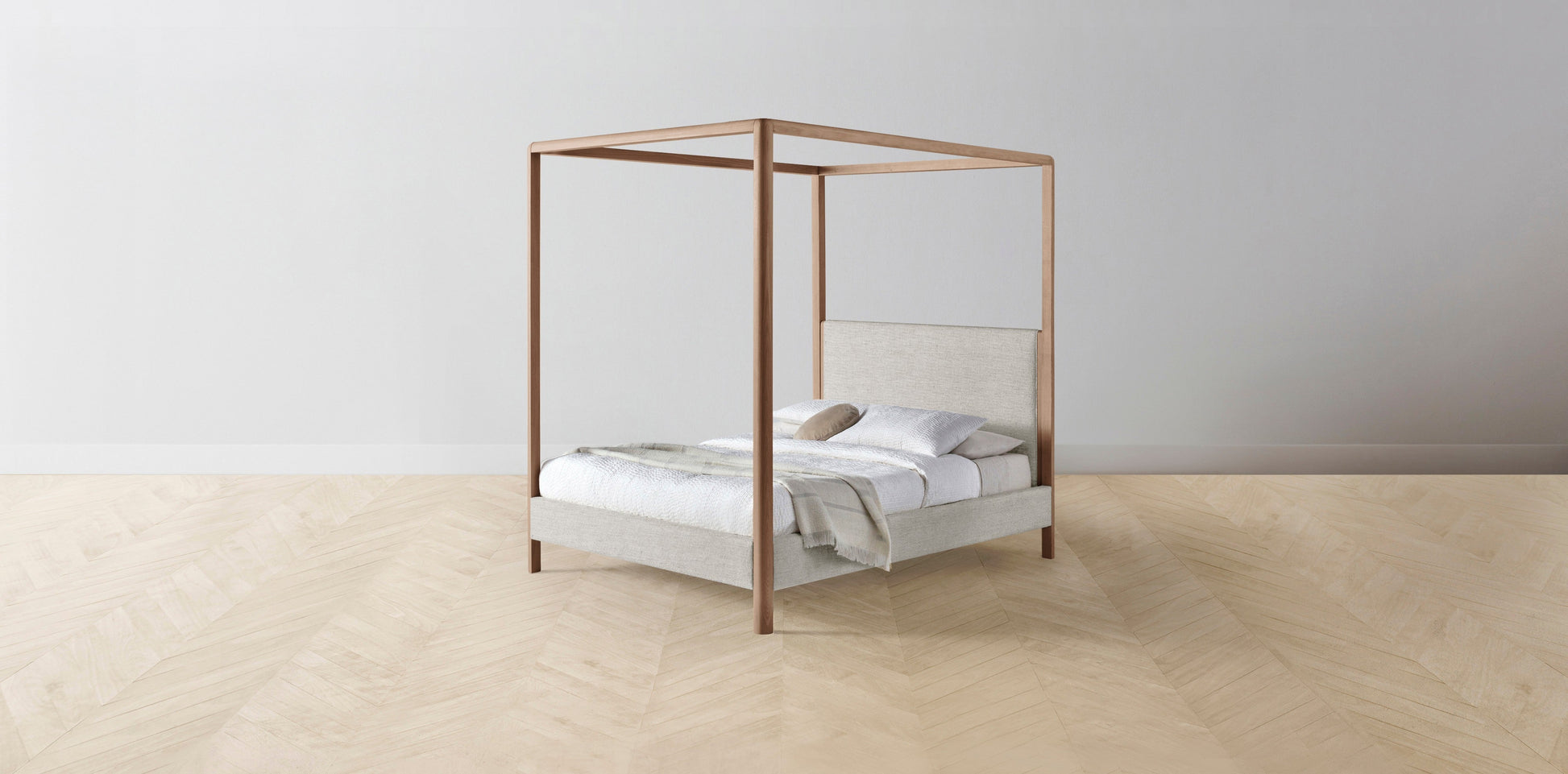 The Thompson - Performance Stonewashed Linen Dew Canopy Bed - 48" Headboard - Muslin on reverse
